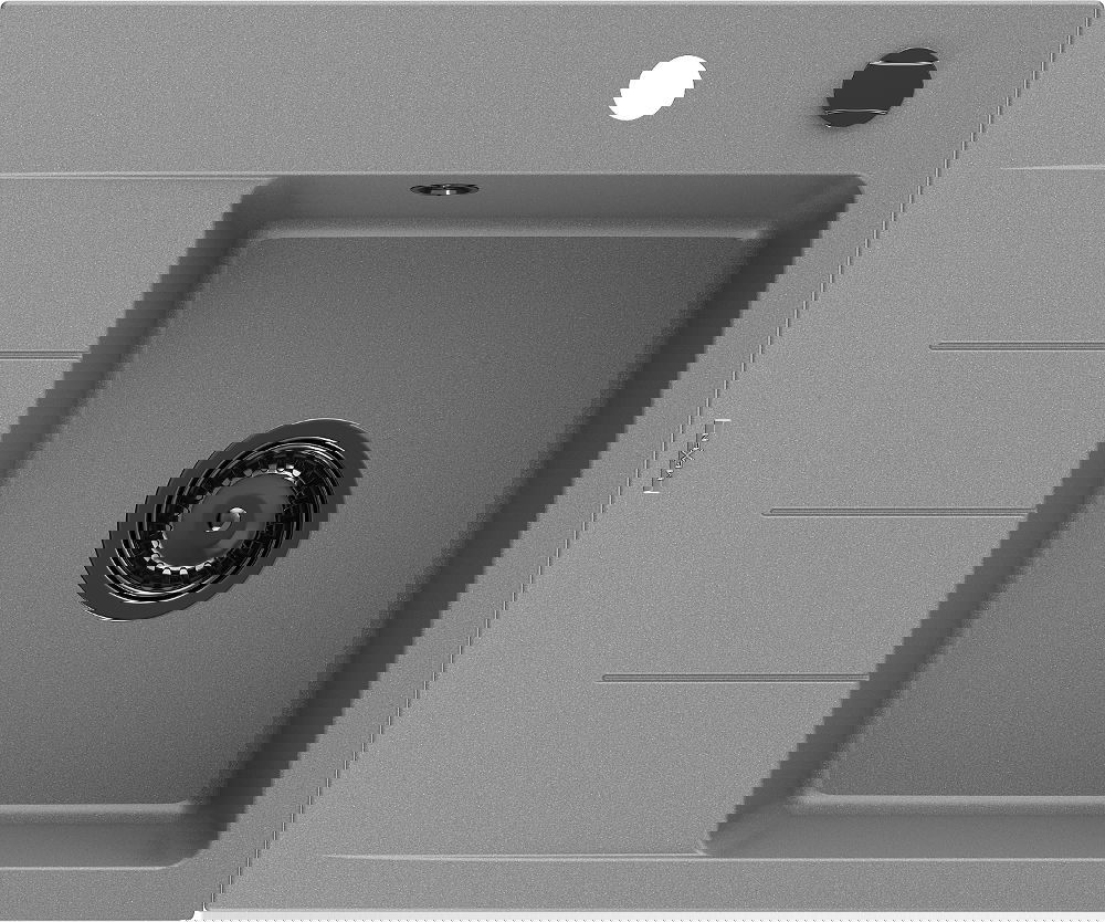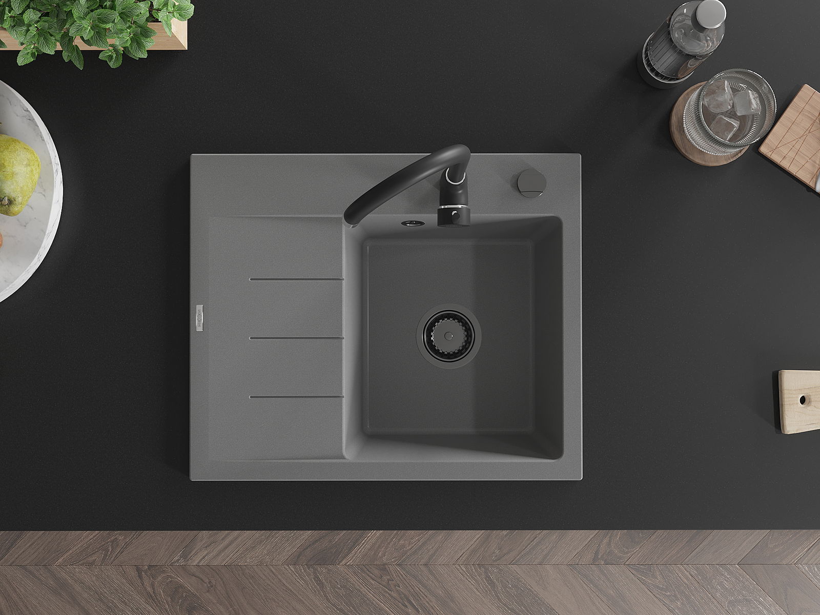 Die Spüle besteht aus hochwertigem Granit. Es ist eine elegante und vor allem praktische Ergänzung zu jeder Küche, unabhängig von ihrem Stil. Hohe Qualität und Granitdauer sorgen für eine langjährige Nutzung.