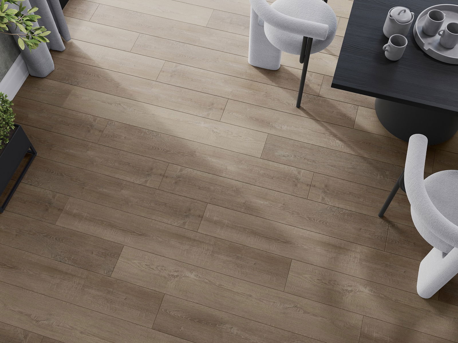 Die Paneele haben eine 4-seitige Fuge - jede Seite wurde so gefräst, dass beim Verlegen eine Verbindung in V-Form entsteht. Dieses Design verleiht dem Boden eine markantere Struktur, was ihm Tiefe und einen ästhetischen Charakter verleiht. Dieser Effekt wird besonders in modernen Arrangements geschätzt, wo Details das außergewöhnliche Erscheinungsbild des Innenraums betonen.