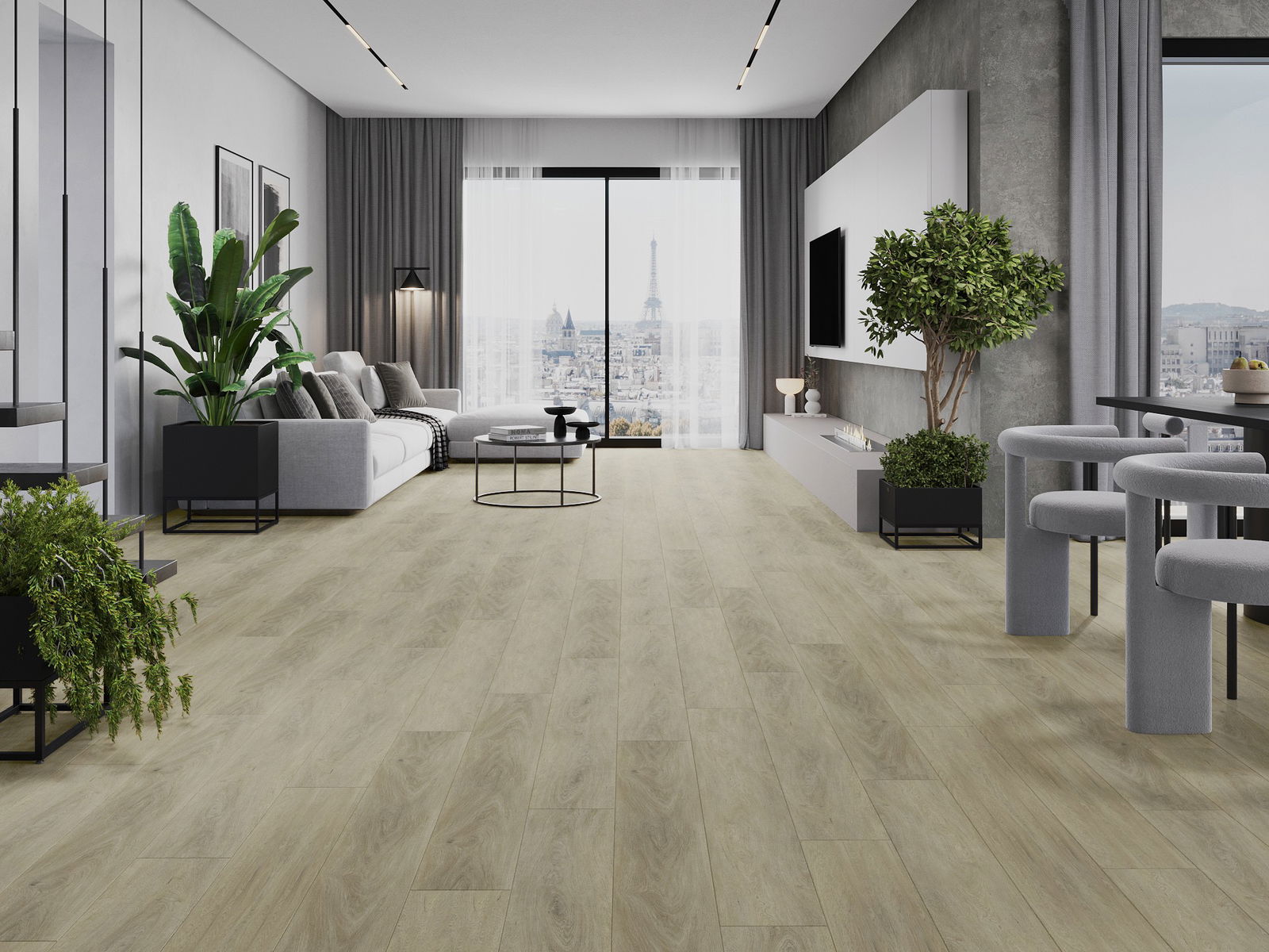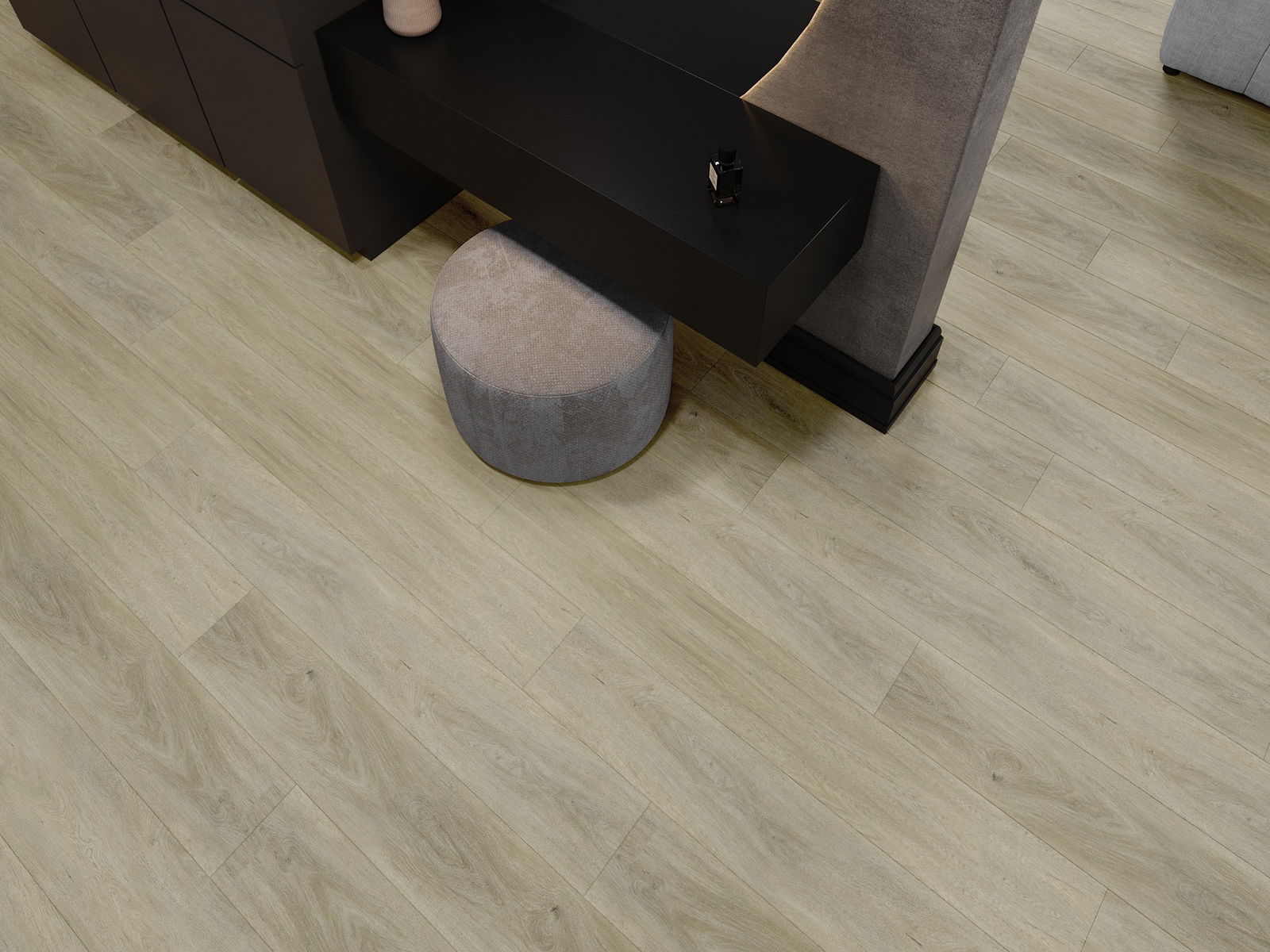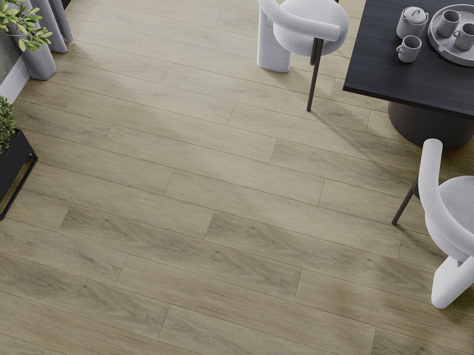 Die Paneele haben eine 4-seitige Fuge - jede Seite wurde so gefräst, dass beim Verlegen eine V-förmige Fuge zwischen den Paneelen entsteht. Dadurch wird der Boden deutlicher differenziert, was dem Boden Tiefe und Struktur verleiht.