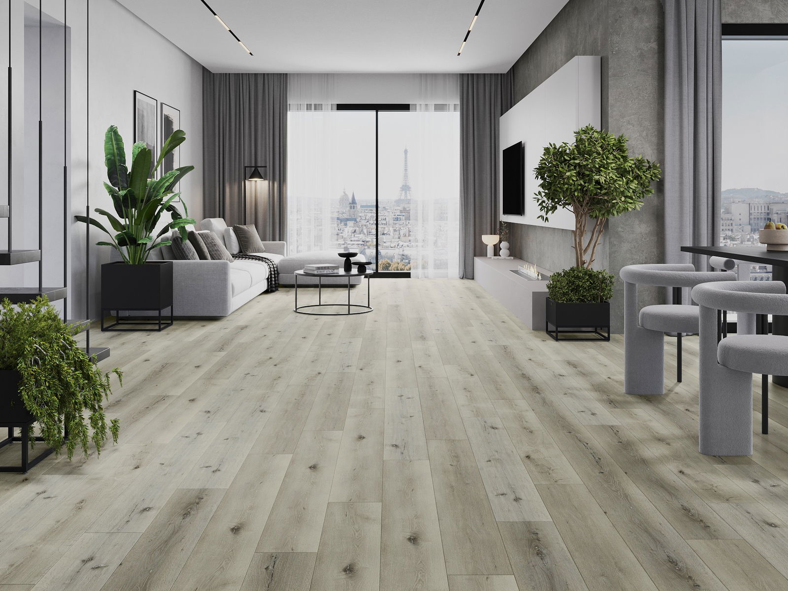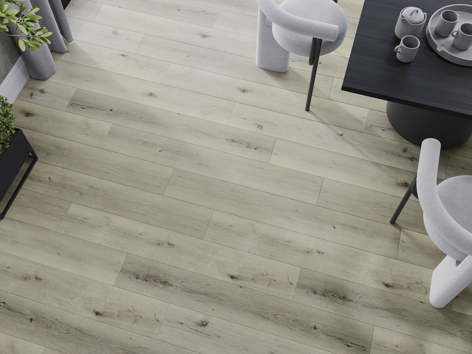 Die Paneele haben eine 4-seitige Fuge - jede Seite wurde so gefräst, dass beim Verlegen eine V-förmige Fuge zwischen den Paneelen entsteht. Dadurch wird der Boden deutlicher differenziert, was dem Boden Tiefe und Struktur verleiht.