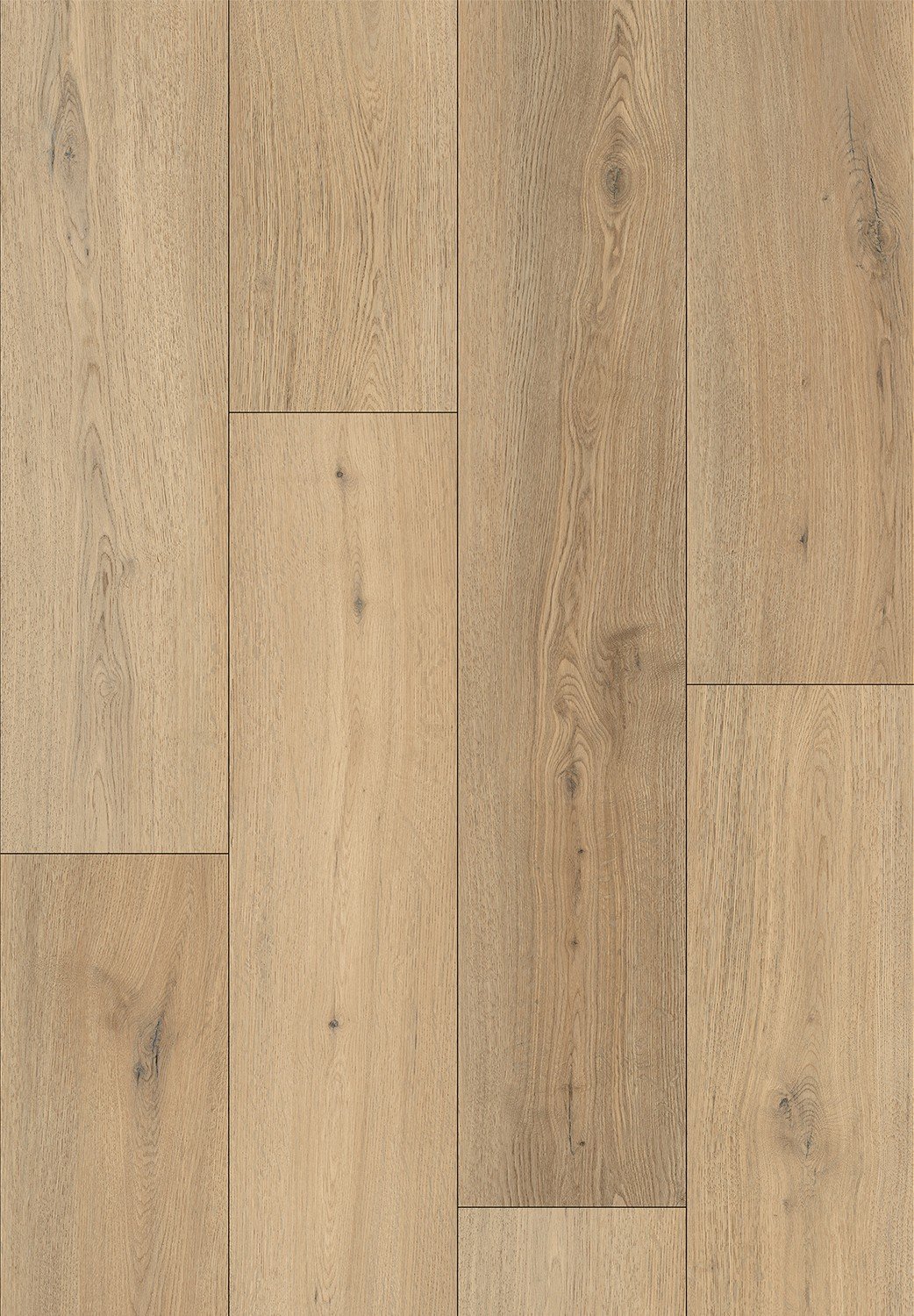 Die Paneele haben eine 4-seitige Fuge - jede Seite wurde so gefräst, dass beim Verlegen eine V-förmige Fuge zwischen den Paneelen entsteht. Dadurch wird der Boden deutlicher differenziert, was dem Boden Tiefe und Struktur verleiht.