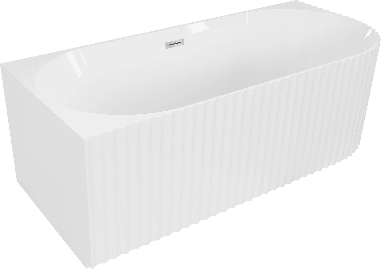 Mexen Gia freistehende, linke, geriffelte Eckbadewanne 150 x 75 cm, Weiß glänzend, Überlauf Chrom - 52701507500L-01
