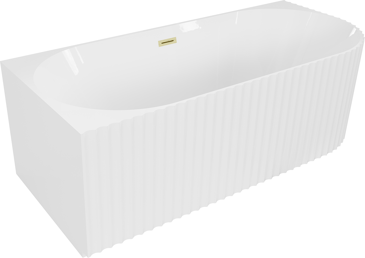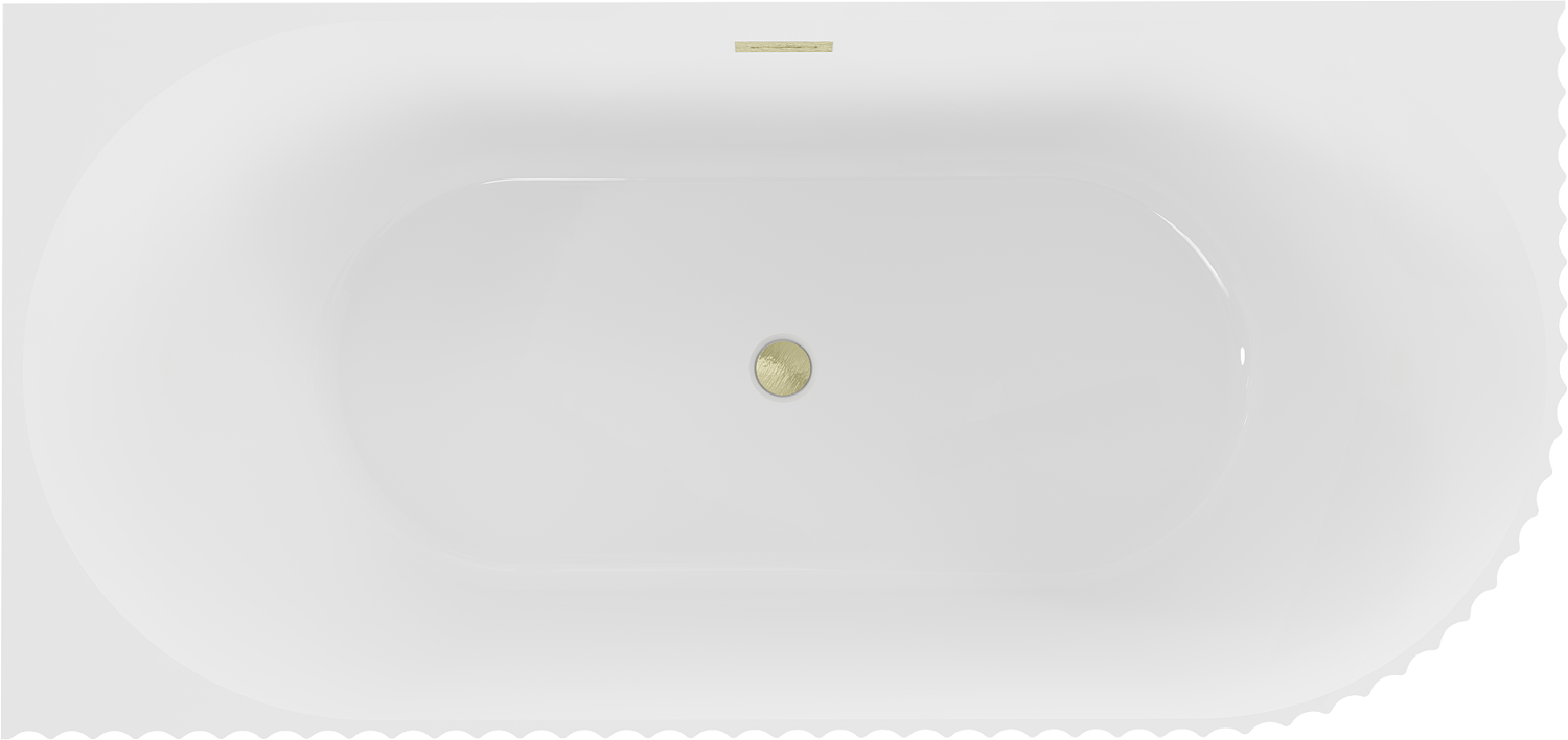 Mexen Gia freistehende Eckbadewanne gerillt links 170 x 80 cm, weiß glänzend, Überlauf gold gebürstet - 52701708000L-55