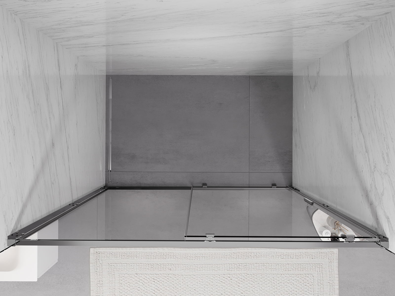 Schiebetüren bewegen sich auf speziellen Führungen und benötigen keinen zusätzlichen Raum, um sie zu öffnen, daher eignen sie sich gut für kleinere Badezimmer. Dank der doppelten Rollen mit Metallkörper ist ihre Bewegung fließend.