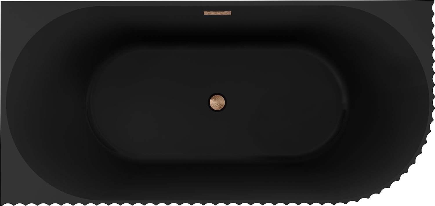Mexen Gia Freistehende Eckbadewanne geriffelt, links 170 x 80 cm, schwarz matt, Überlauf gebürstetes Kupfer - 52701708071L-65