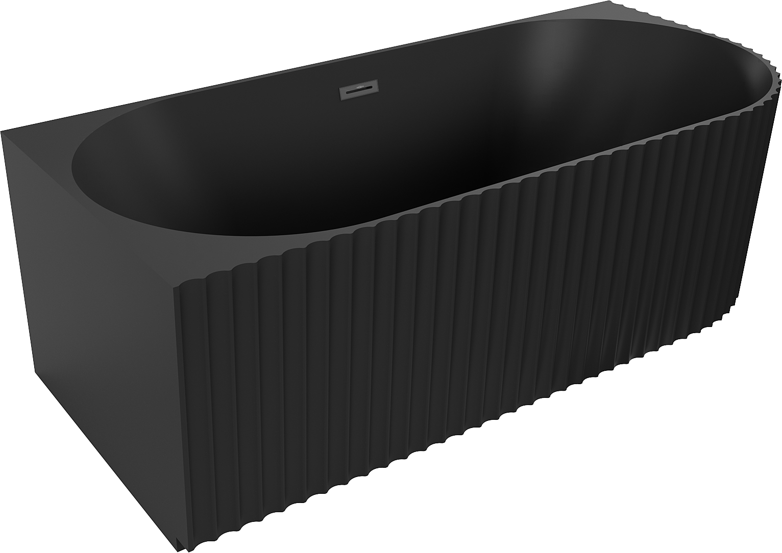 Mexen Gia freistehende Eckbadewanne geriffelt links 170 x 80 cm, schwarz matt, Überlauf schwarz - 52701708071L-70