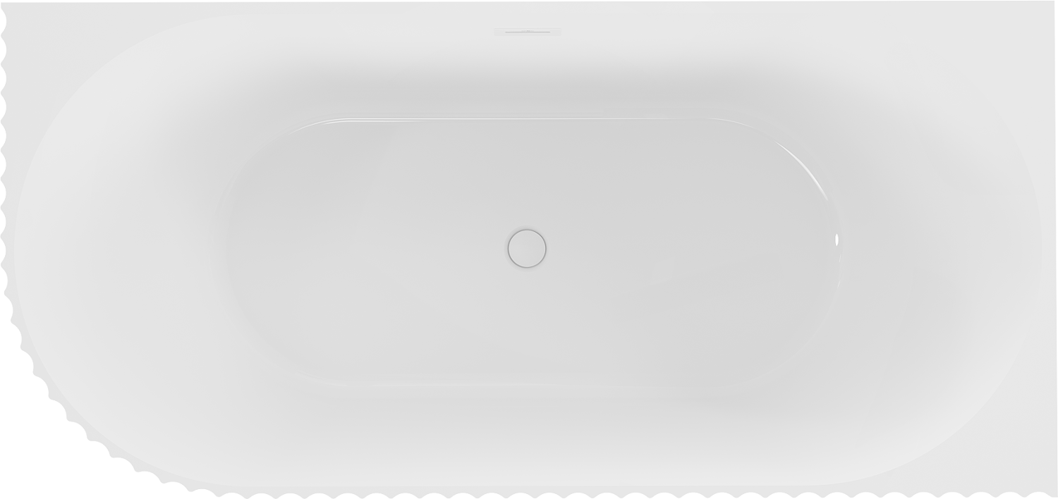 Mexen Gia freistehende Eck-Badewanne rechts geriffelt 150 x 75 cm, weiß glänzend, weißer Überlauf - 52701507500P-20
