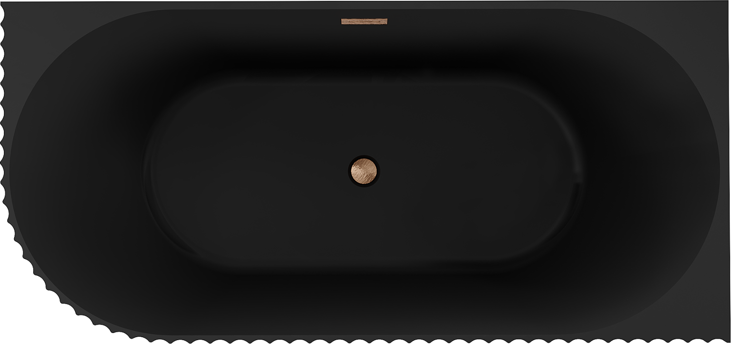 Mexen Gia freistehende geriffelte Eckbadewanne rechts 150 x 75 cm, schwarz matt, Überlauf gebürstetes Kupfer - 52701507571P-65