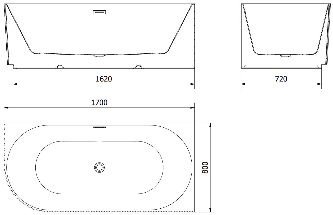 Mexen Gia freistehende, rechteckige, geriffelte Eckwanne 170 x 80 cm, weiß glänzend, weißer Überlauf - 52701708000P-20