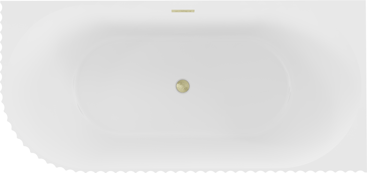 Mexen Gia freistehende, geriffelte Eckbadewanne rechts 170 x 80 cm, mattweiß, Überlauf aus gebürstetem Gold - 52701708001P-55