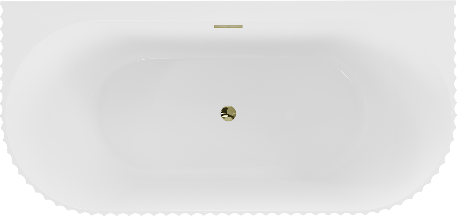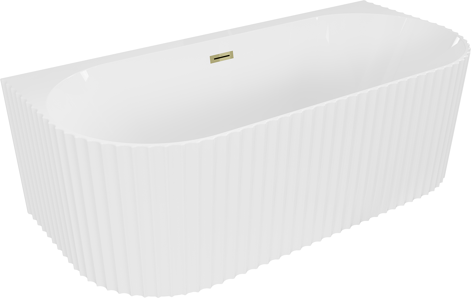 Mexen Sella freistehende an der Wand stehende gerillte Badewanne 150 x 75 cm, weiß glänzend, goldener Überlauf - 52711507500-50