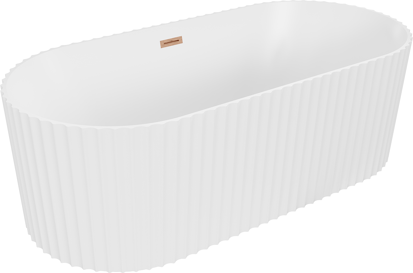 Mexen Paola freistehende gerippte Wanne 150 x 75 cm, weiß matt, Überlauf gebürstetes Kupfer - 52721507501-65
