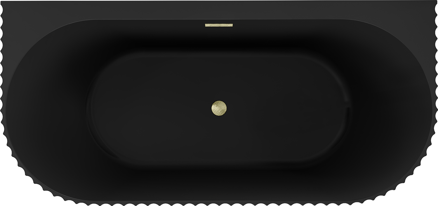 Mexen Sella freistehende Wandbadewanne geriffelt 150 x 75 cm, schwarz matt, Überlauf gold gebürstet - 52711507571-55