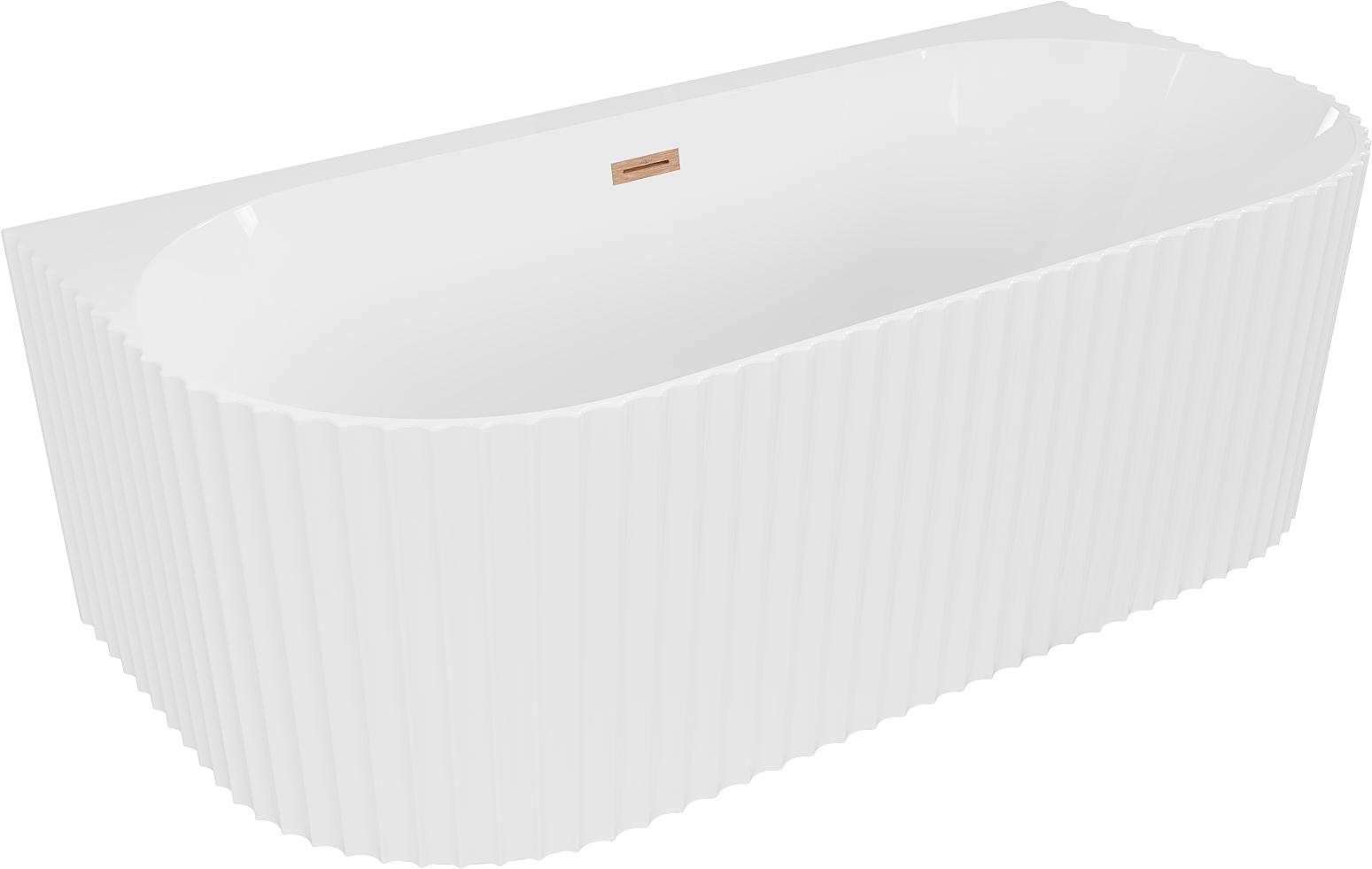 Mexen Sella freistehende wandnahe Wanne geriffelt 170 x 80 cm, weiß glänzend, Überlauf gebürstetes Kupfer - 52711708000-65