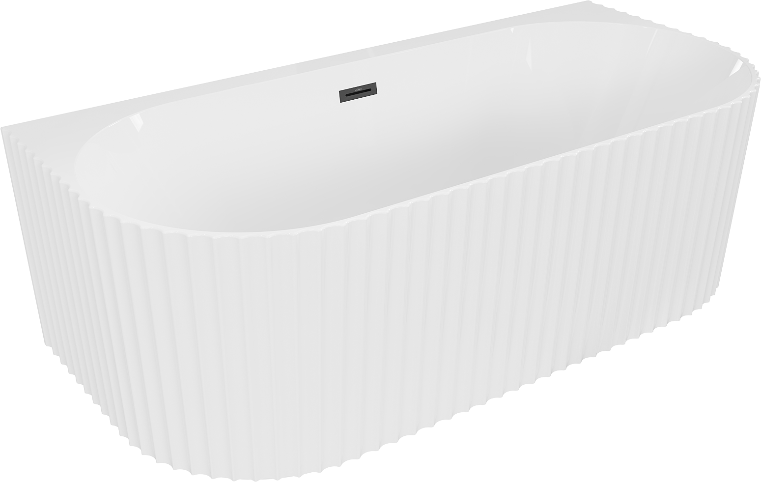 Mexen Sella freistehende, wandnahe, gerillte Badewanne 170 x 80 cm, weiß glänzend, Überlauf schwarz - 52711708000-70
