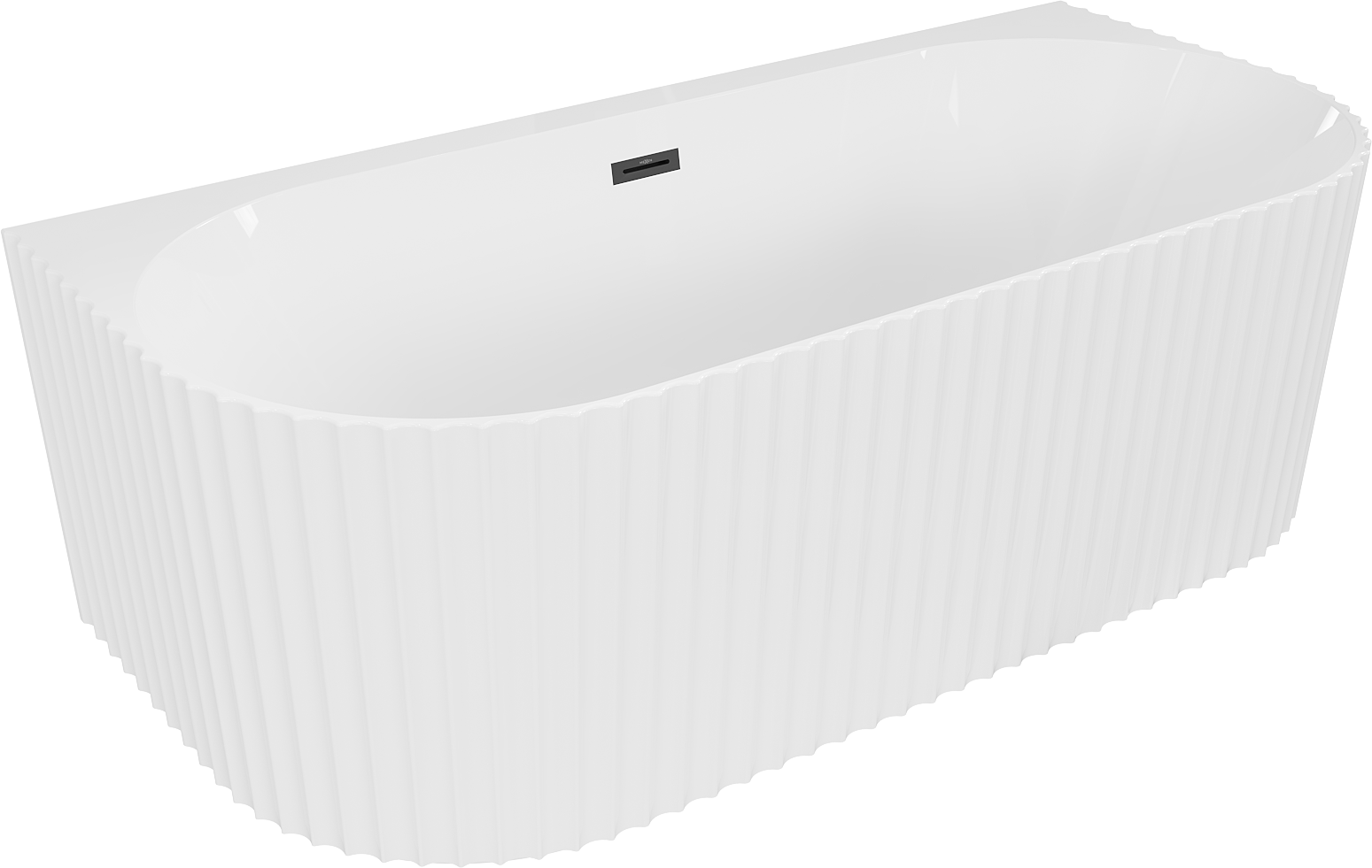 Mexen Sella freistehende wandstehende geriffelte Wanne 170 x 80 cm, weiß glänzend, schwarzer Überlauf - 52711708000-70