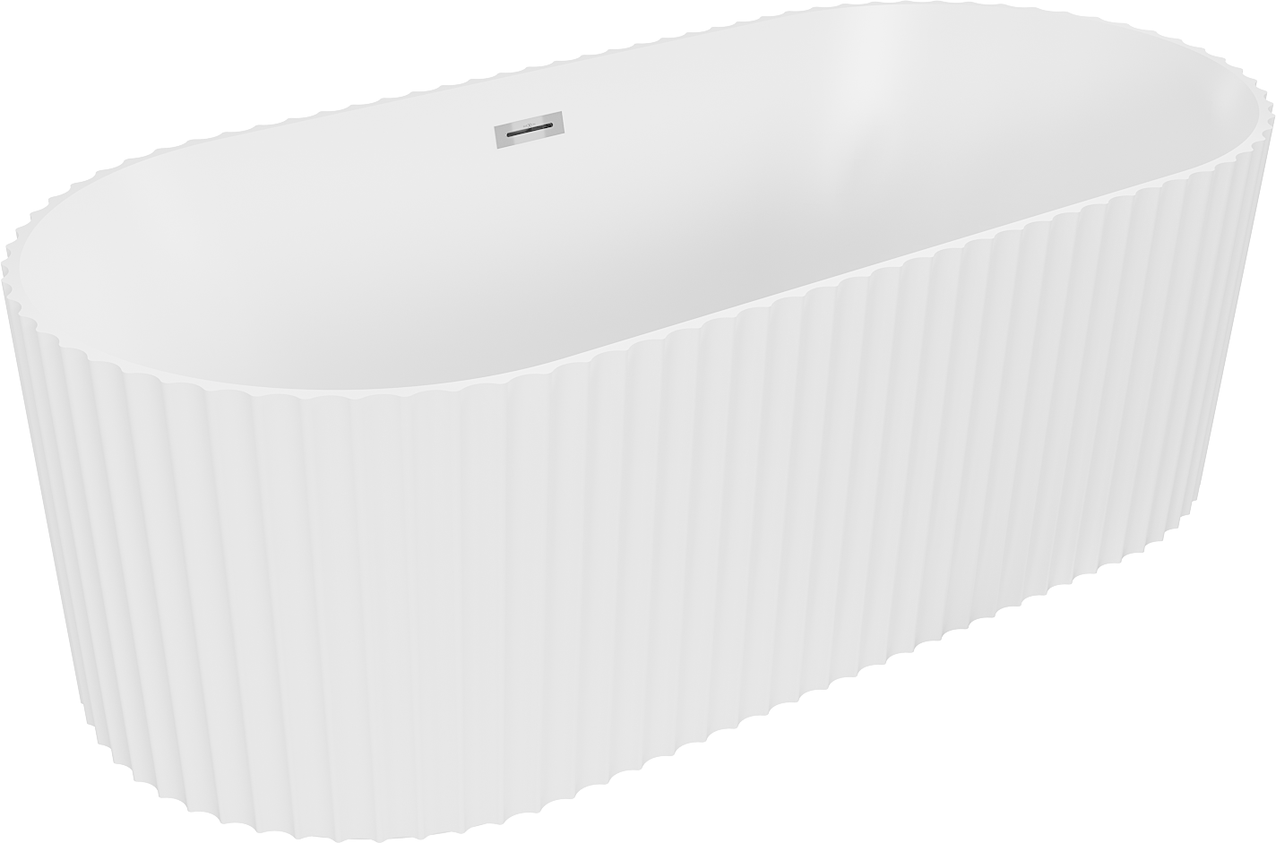 Mexen Paola freistehende geriffelte Wanne 170 x 80 cm, weiß matt, Überlauf chrom - 52721708001-01