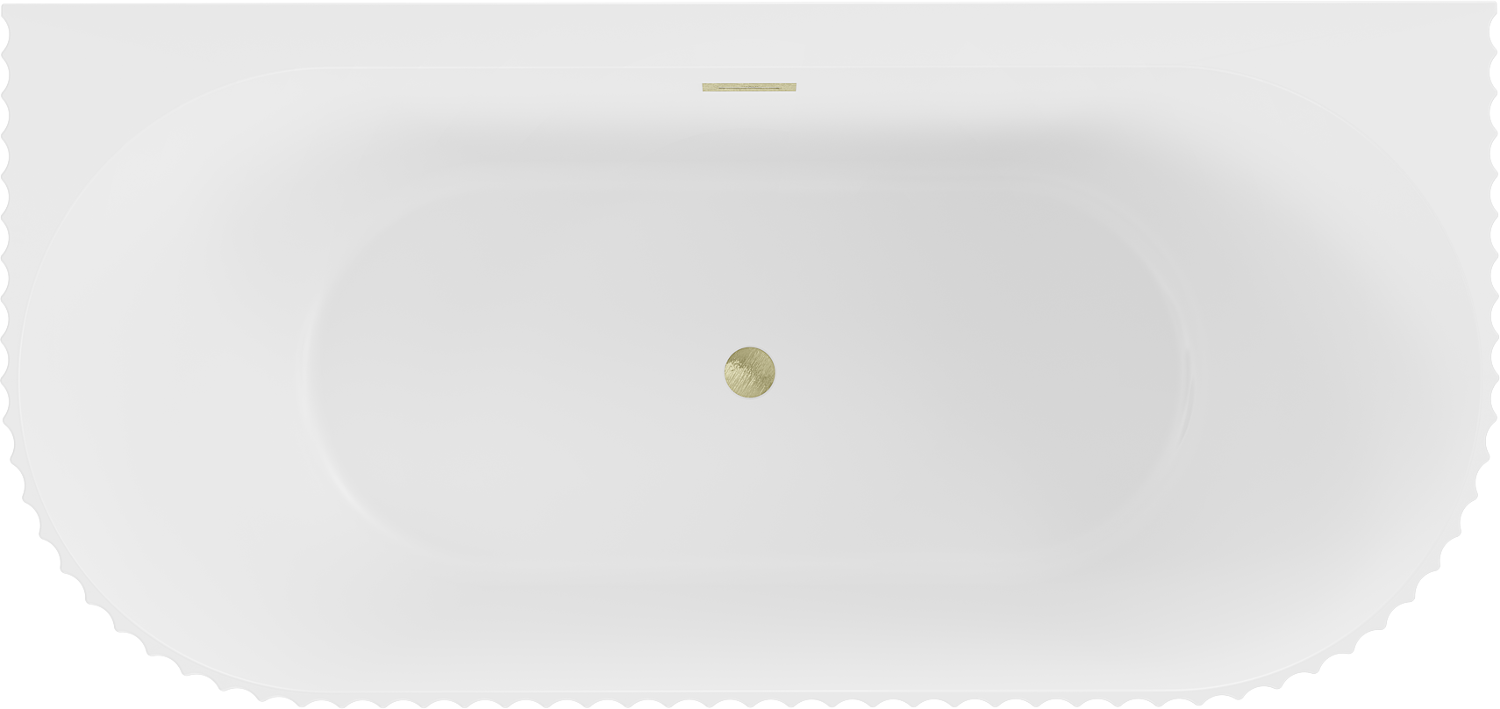 Mexen Sella freistehende, wandnahe geriffelte Badewanne 170 x 80 cm, weiß matt, Überlauf gold gebürstet - 52711708001-55