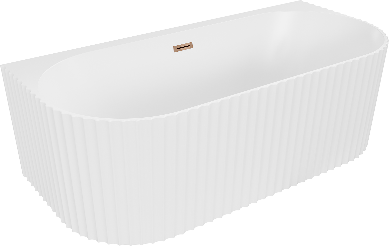 Mexen Sella freistehende wandnahe Riffelbadewanne 170 x 80 cm, weiß matt, Überlauf Roségold - 52711708001-60