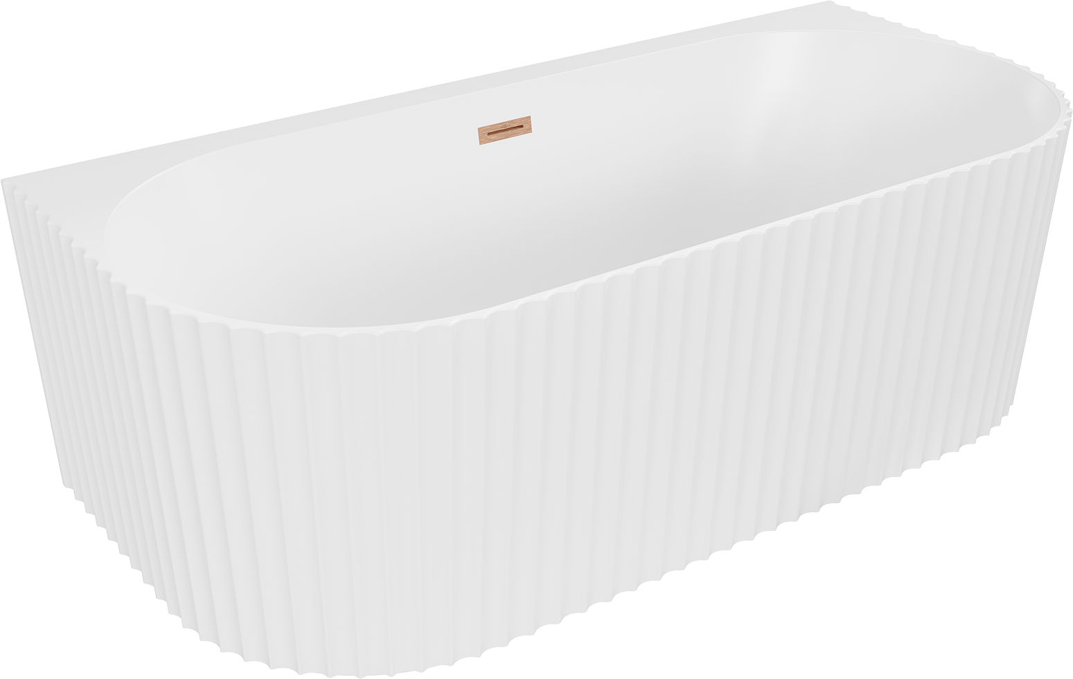 Mexen Sella freistehende geriffelte Badewanne an der Wand 170 x 80 cm, weiß matt, Überlauf gebürstetes Kupfer - 52711708001-65