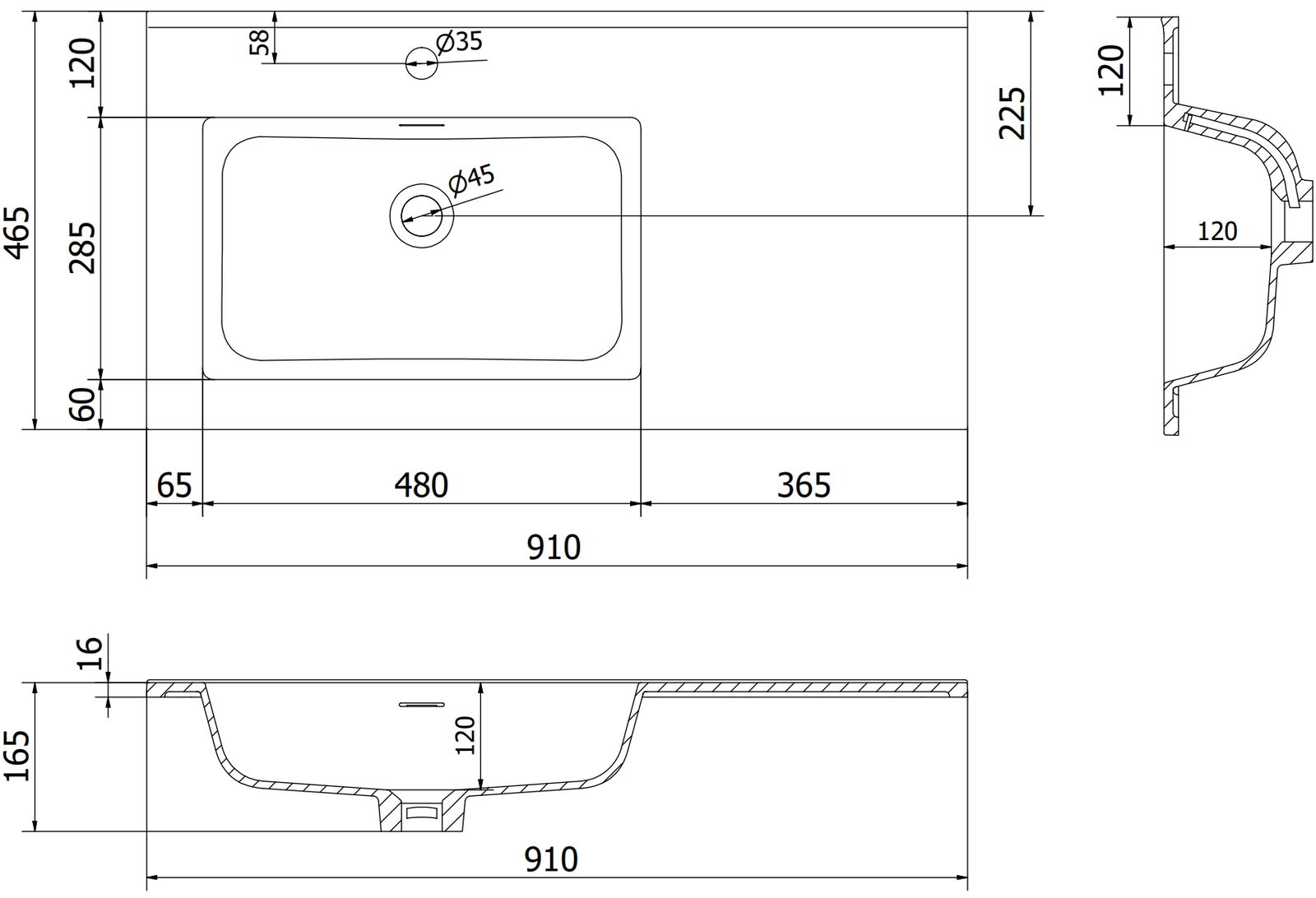 Mexen Otis Unterbauwaschbecken links 91 x 46,5 cm, weiß glänzend - 25189000L