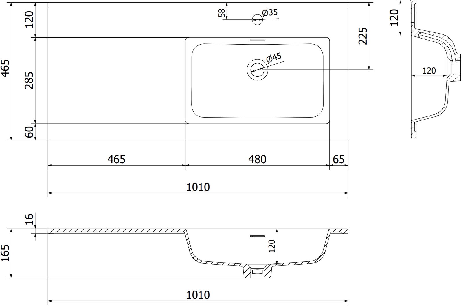 Mexen Otis Waschbecken, in die Arbeitsplatte eingelassen, rechts 101 x 46,5 cm, weiß glänzend - 25181000P