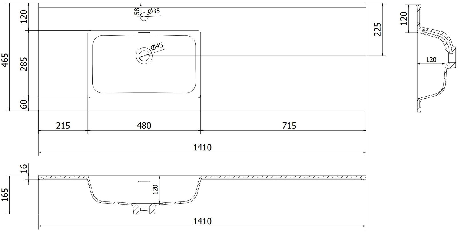 Typ: Einbaubecken, Links