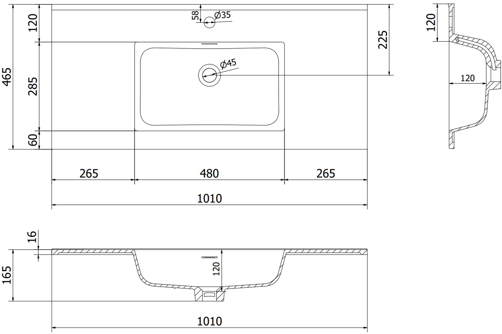 Das Überlaufloch heißt "Sicherheitsloch". Wegen ihm entkommt überschüssiges Wasser, dank dessen, worauf das Wasser nicht aus der Kante des Produkts kommt, wenn der Bodenabfluss geschlossen ist. Dies ist eine sehr sichere und praktische Lösung.