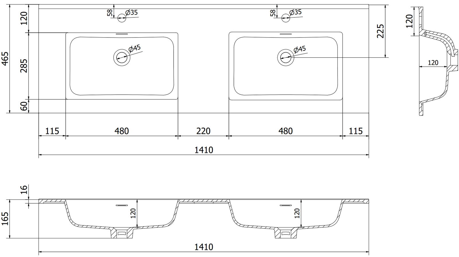Mexen Otis Doppelwaschbecken eingelassen in die Arbeitsplatte 141 x 46,5 cm, weiß matt - 25181401D