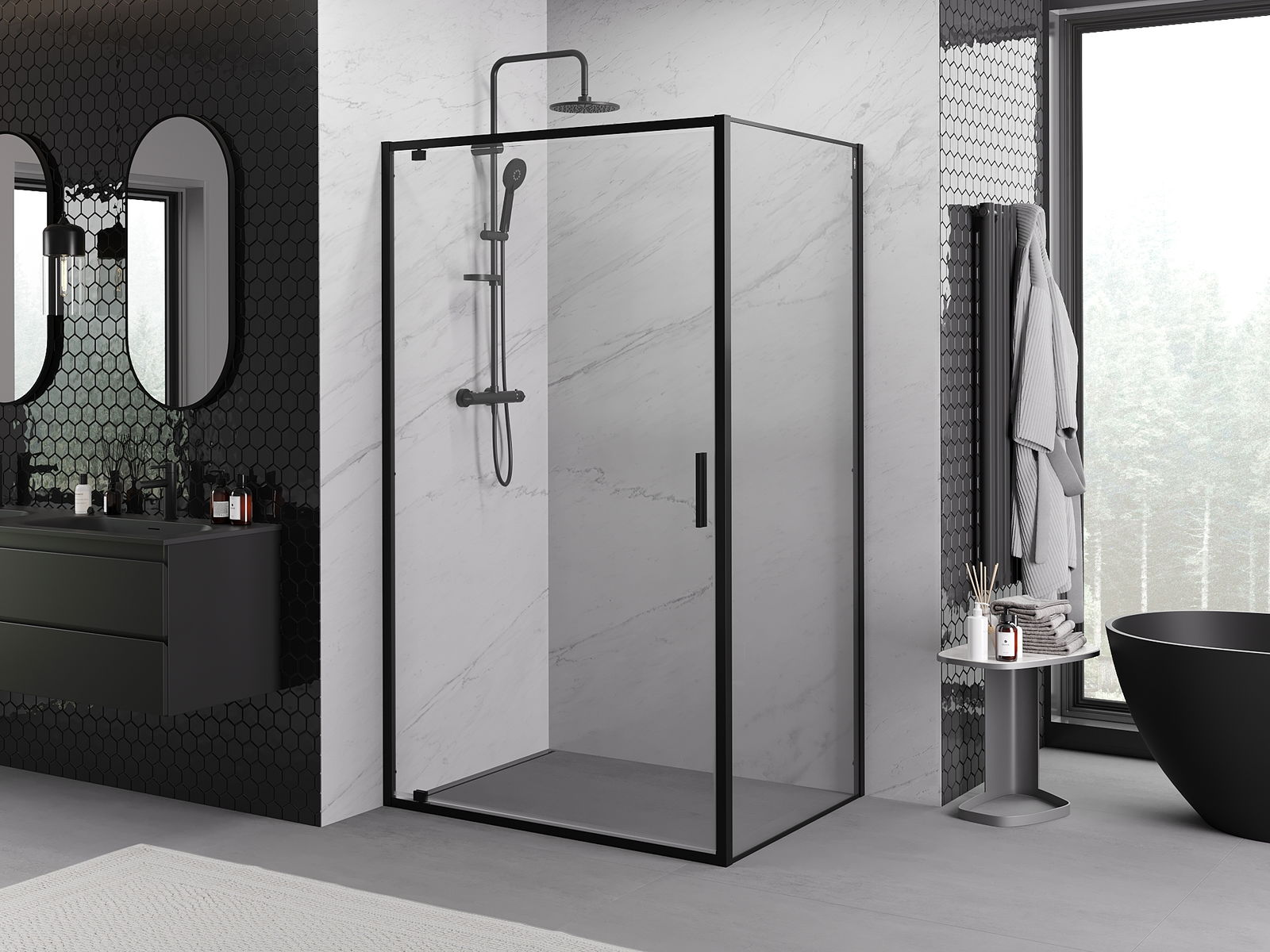 Der handliche und bequeme Griff besteht aus langlebigem und widerstandsfähigem Metall. Die modische Form in Kombination mit einer farblich auf die Profile abgestimmten Oberflächenveredelung verleiht dem Ganzen ein modernes und stilvolles Erscheinungsbild und betont die Ästhetik jedes Badezimmers.
