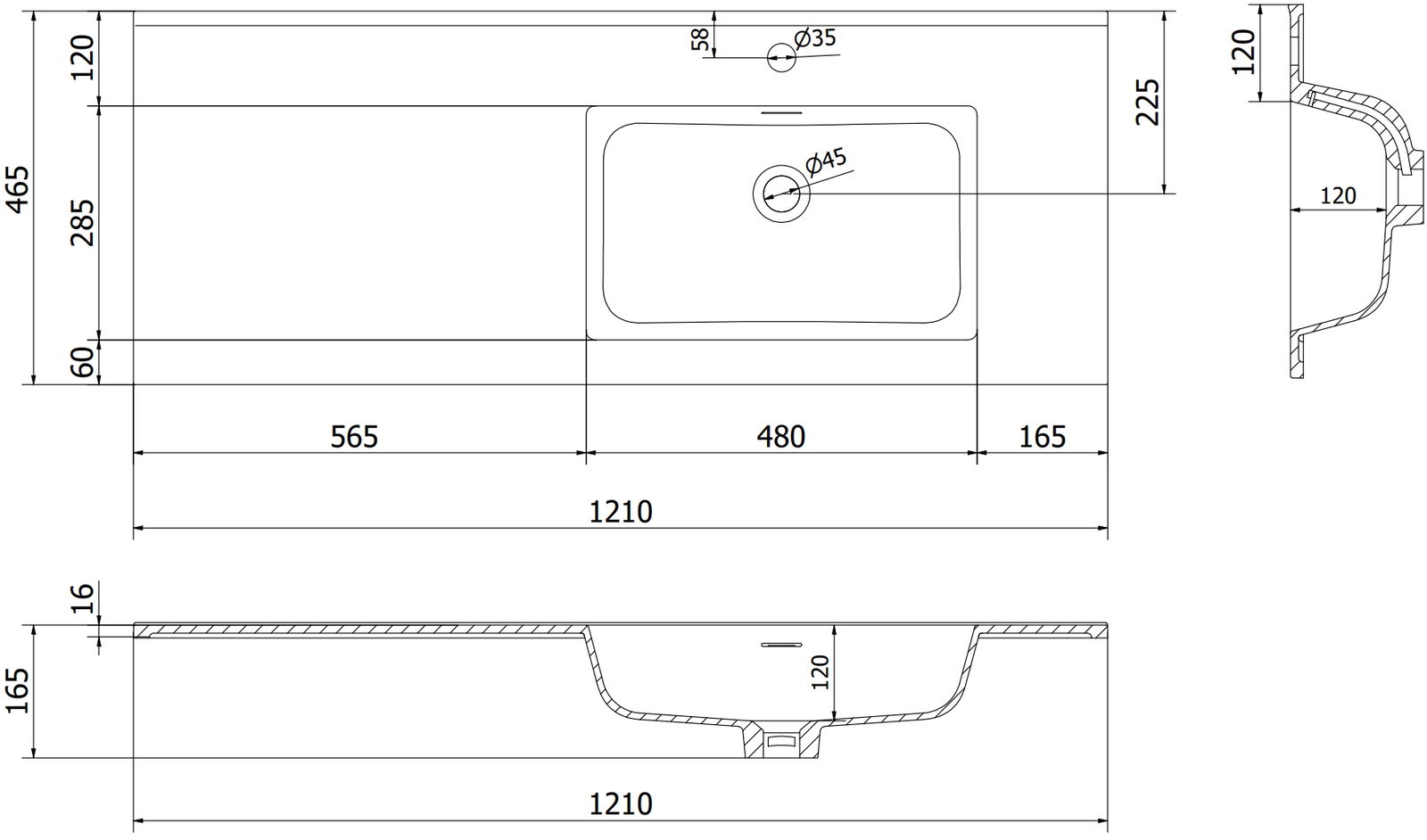 Mexen Otis eingebaute Waschtisch rechte Seite 121 x 46,5 cm, schwarz matt - 25181271P