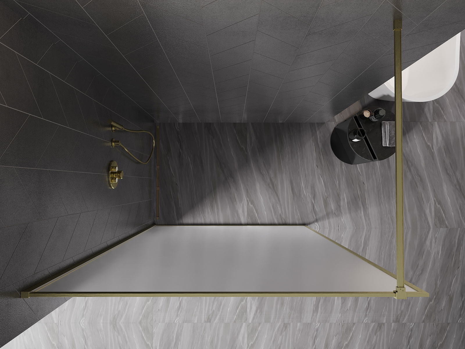 Mexen Kioto-F Duschwand Walk-in mit Rahmen 90 x 202 cm, Matt 8 mm, Gold gebürstet - 800-090-104-55-30