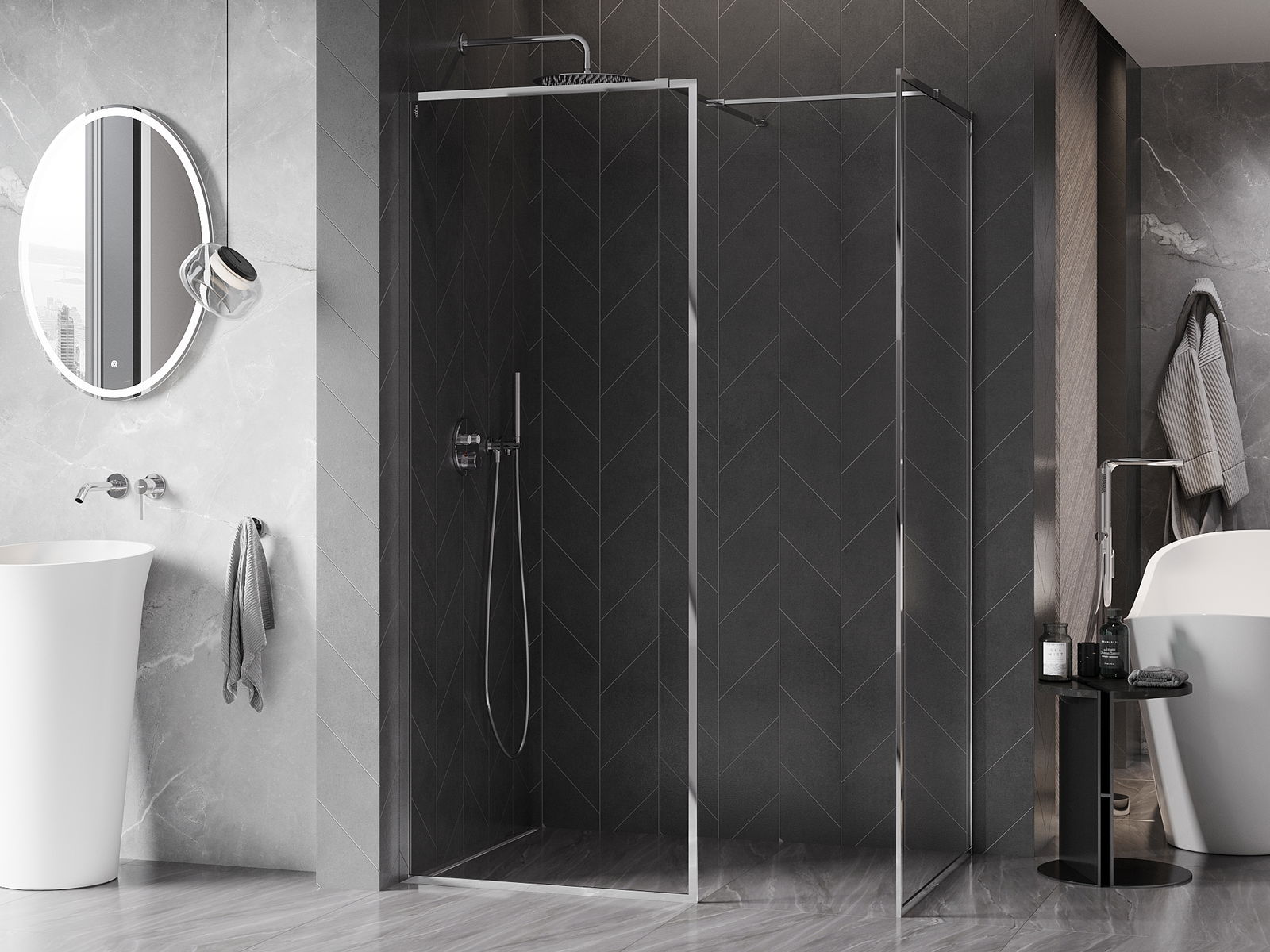 Mexen Kioto-F Duschwand Walk-in mit Rahmen 140 x 85 cm, transparent 8 mm, Chrom - 800-140-202-04-00-085