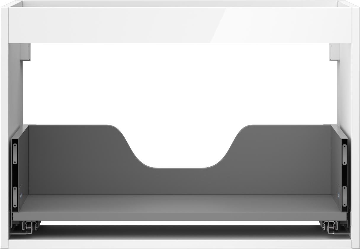 Der Ausschnitt in der Schublade ist so gestaltet, dass er den Siphon aufnehmen kann, der für Waschbeckeninstallationen erforderlich ist. Dadurch kann das Möbelstück voll funktionsfähig montiert werden, ohne auf den Platz in der Schublade zugunsten der Installation verzichten zu müssen.
