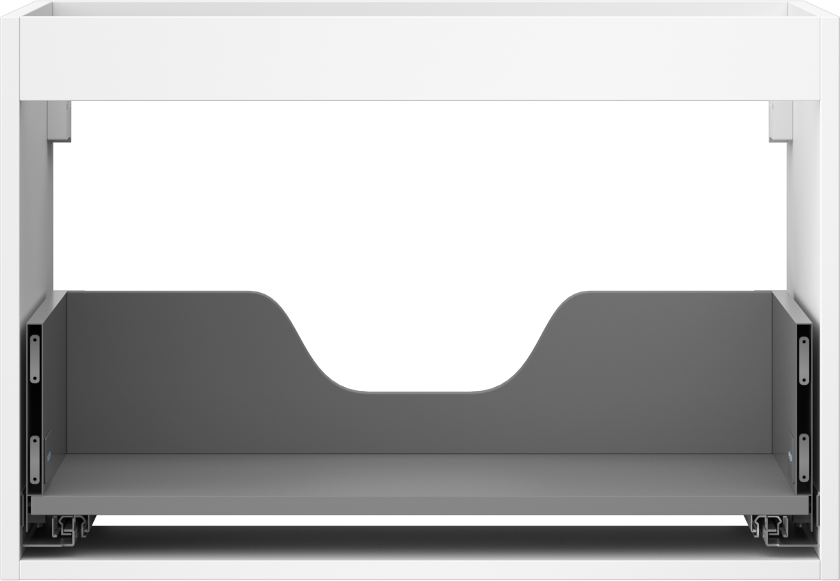 Der Ausschnitt in der Schublade ist so gestaltet, dass er den Siphon aufnehmen kann, der für Waschbeckeninstallationen erforderlich ist. Dadurch kann das Möbelstück voll funktionsfähig montiert werden, ohne auf den Platz in der Schublade zugunsten der Installation verzichten zu müssen.
