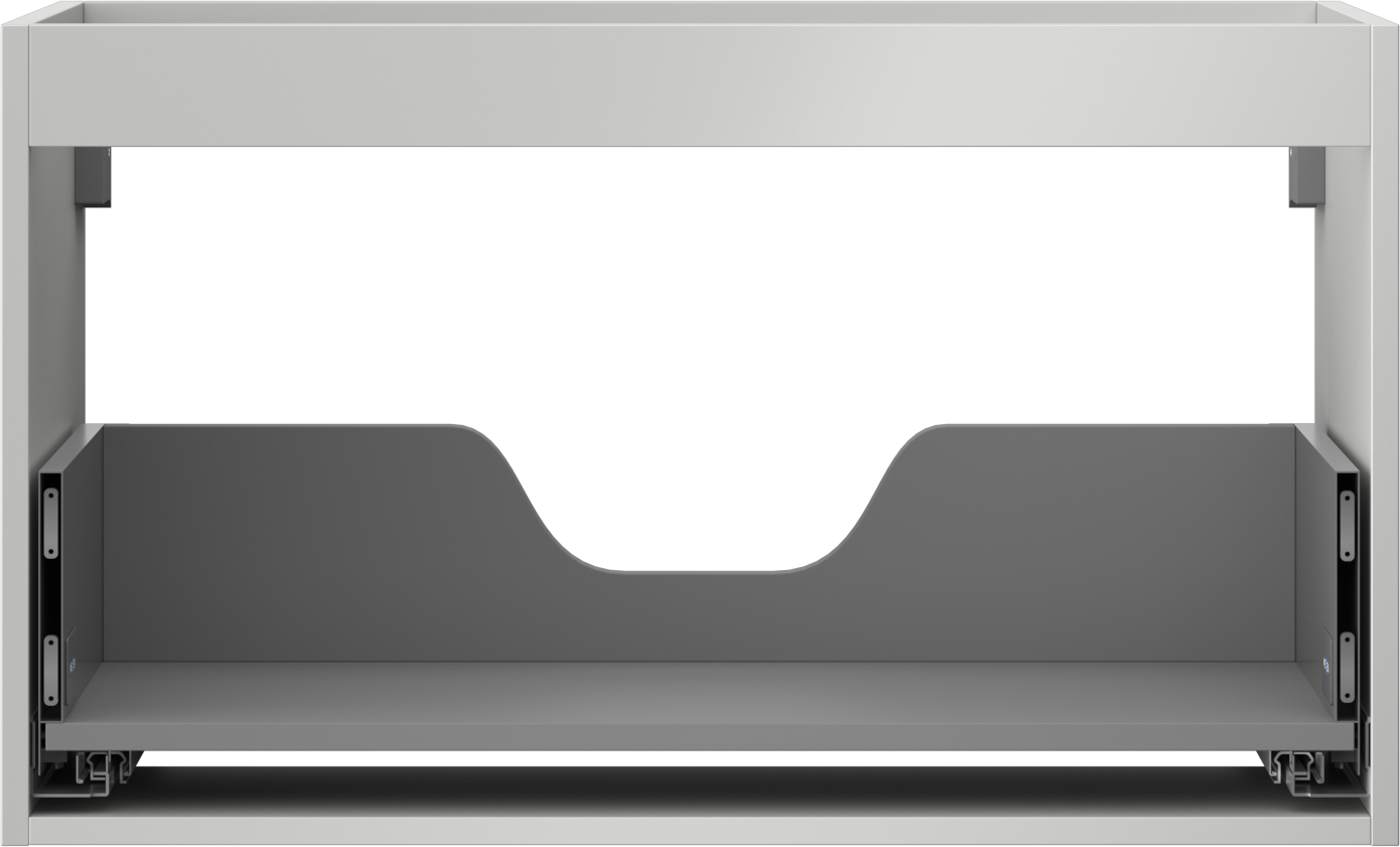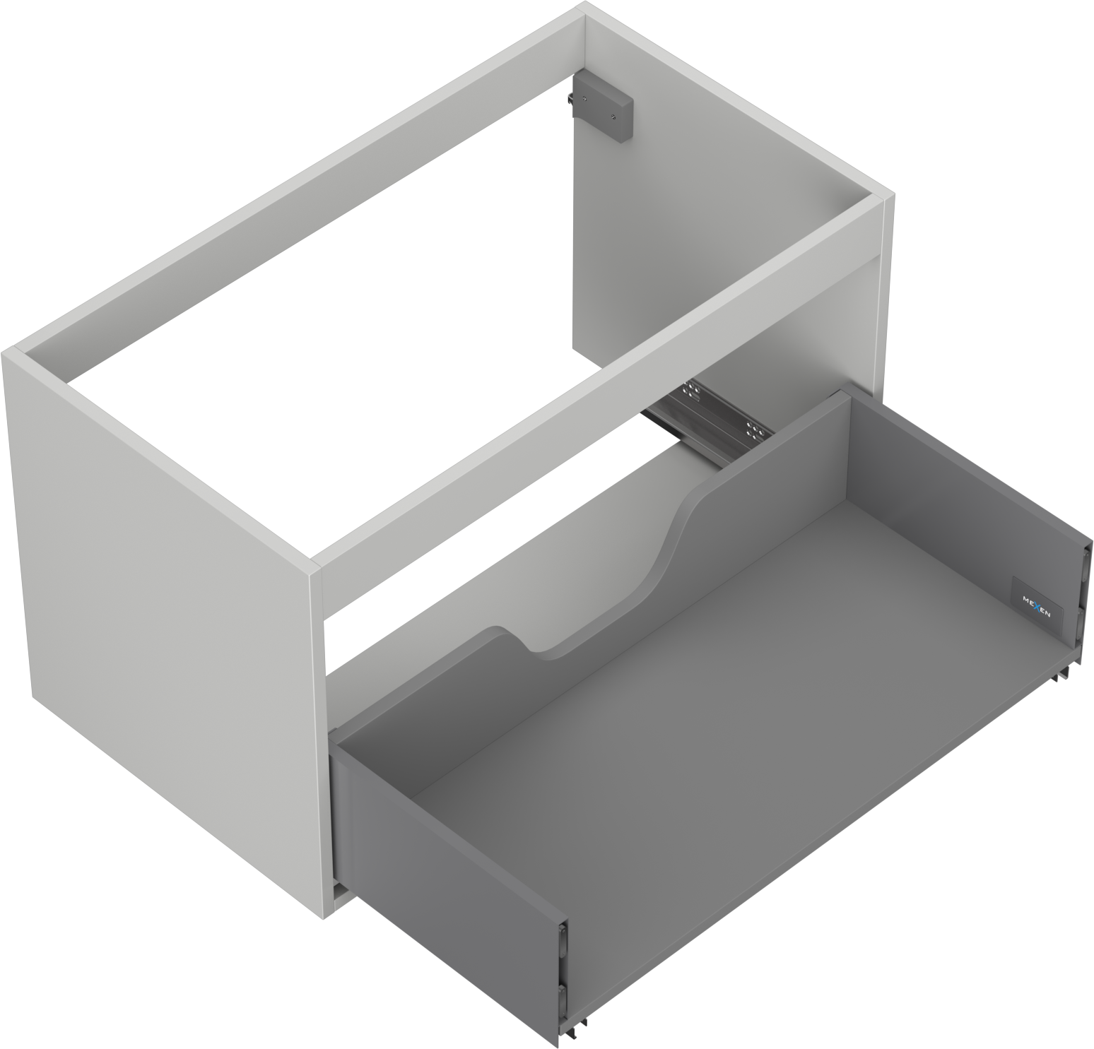 Der Ausschnitt in der Schublade ist so gestaltet, dass er den Siphon aufnehmen kann, der für Waschbeckeninstallationen erforderlich ist. Dadurch kann das Möbelstück voll funktionsfähig montiert werden, ohne auf den Platz in der Schublade zugunsten der Installation verzichten zu müssen.