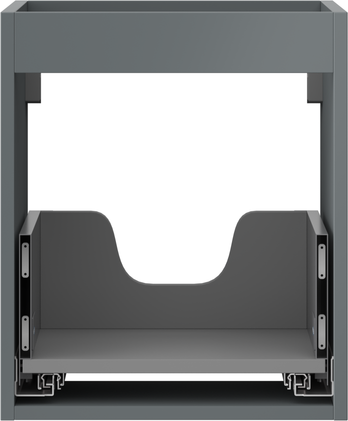 Der Ausschnitt in der Schublade ist so gestaltet, dass er den Siphon aufnehmen kann, der für Waschbeckeninstallationen erforderlich ist. Dadurch kann das Möbelstück voll funktionsfähig montiert werden, ohne auf den Platz in der Schublade zugunsten der Installation verzichten zu müssen.