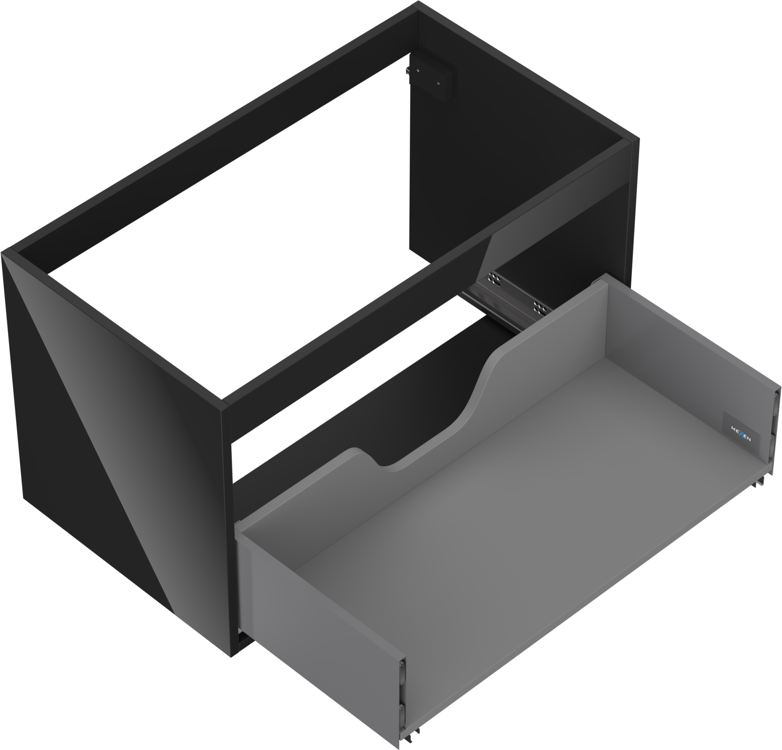 Der Ausschnitt in der Schublade ist so gestaltet, dass er den Siphon aufnehmen kann, der für Waschbeckeninstallationen erforderlich ist. Dadurch kann das Möbelstück voll funktionsfähig montiert werden, ohne auf den Platz in der Schublade zugunsten der Installation verzichten zu müssen.
