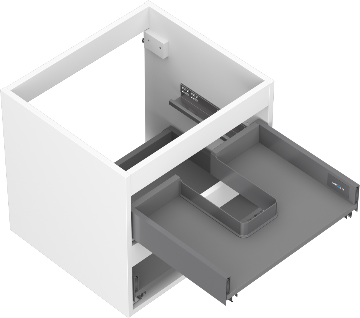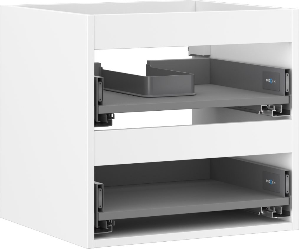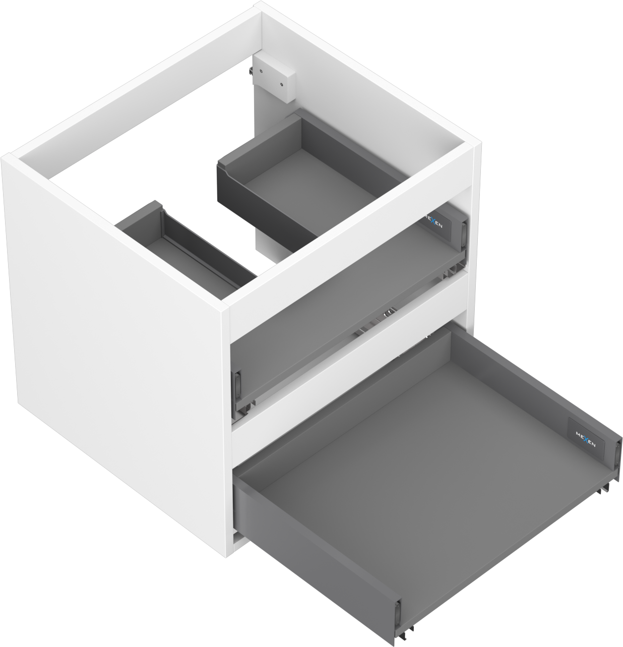 Eine Schublade mit Vollauszug ist eine Schublade, die mit einem Mechanismus ausgestattet ist, der es ermöglicht, sie vollständig aus dem Möbelkörper herauszuziehen. Dieser Mechanismus ermöglicht einen einfacheren Zugriff auf den Inhalt der Schublade, da nicht nach den hinteren Kanten gegriffen werden muss.
