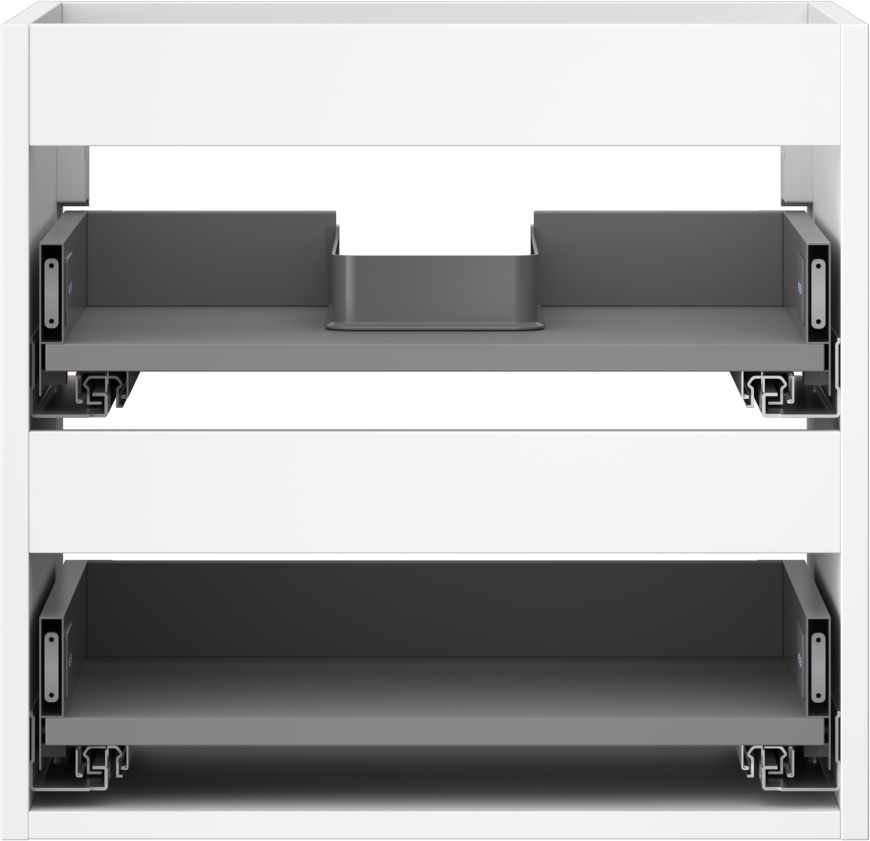 Der Ausschnitt in der Schublade ist für die Aufnahme eines Siphons ausgelegt, der für die Installation von Waschbecken unerlässlich ist. Dadurch kann das Möbelstück voll funktionsfähig installiert werden, ohne dass für die Installation Schubladenplatz geopfert werden muss.