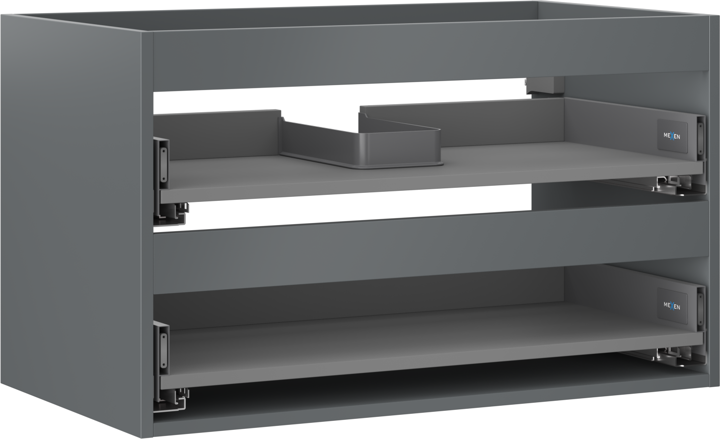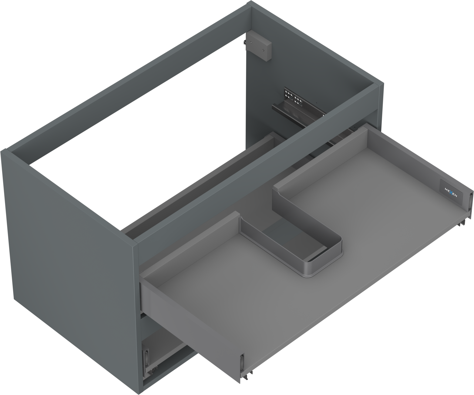 Eine Schublade mit Vollauszug ist eine Schublade, die mit einem Mechanismus ausgestattet ist, der es ermöglicht, sie vollständig aus dem Möbelkörper herauszuziehen. Dieser Mechanismus ermöglicht einen einfacheren Zugriff auf den Inhalt der Schublade, da nicht nach den hinteren Kanten gegriffen werden muss.