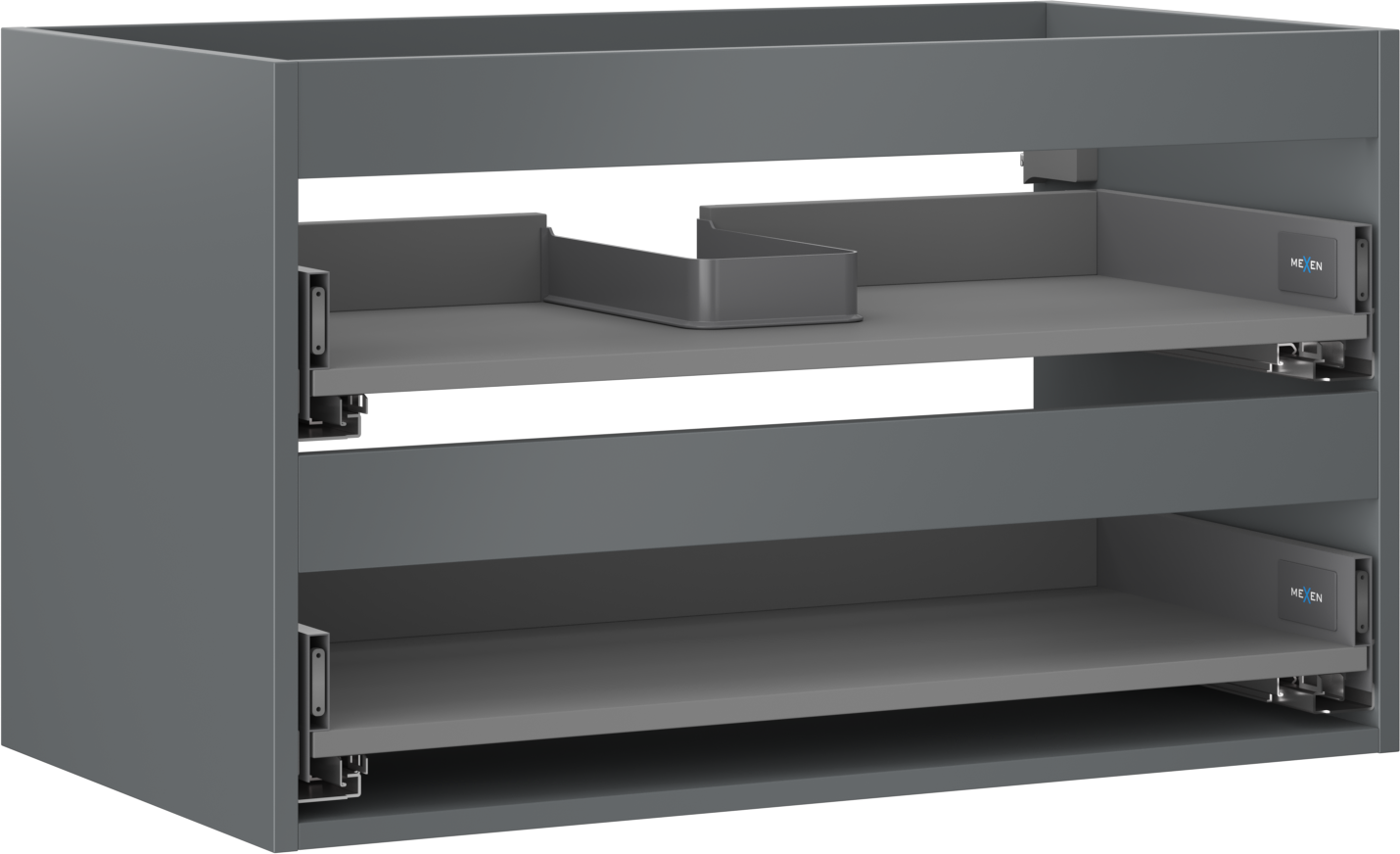 Eine Schublade mit Vollauszug ist eine Art von Schublade, die mit einem Mechanismus ausgestattet ist, der ein vollständiges Herausziehen aus dem Möbelkorpus ermöglicht. Ein solcher Mechanismus ermöglicht einen einfacheren Zugriff auf den Inhalt der Schublade, da es nicht notwendig ist, nach den hinteren Kanten zu greifen.