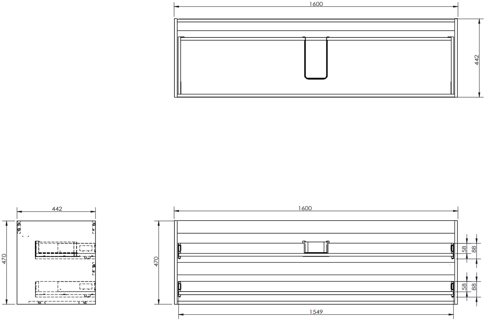 Mexen Box-A Korpus Unterschrank 160 cm, 2 Schubladen, Graphit Matt - 91AX0-1600-470-2-66