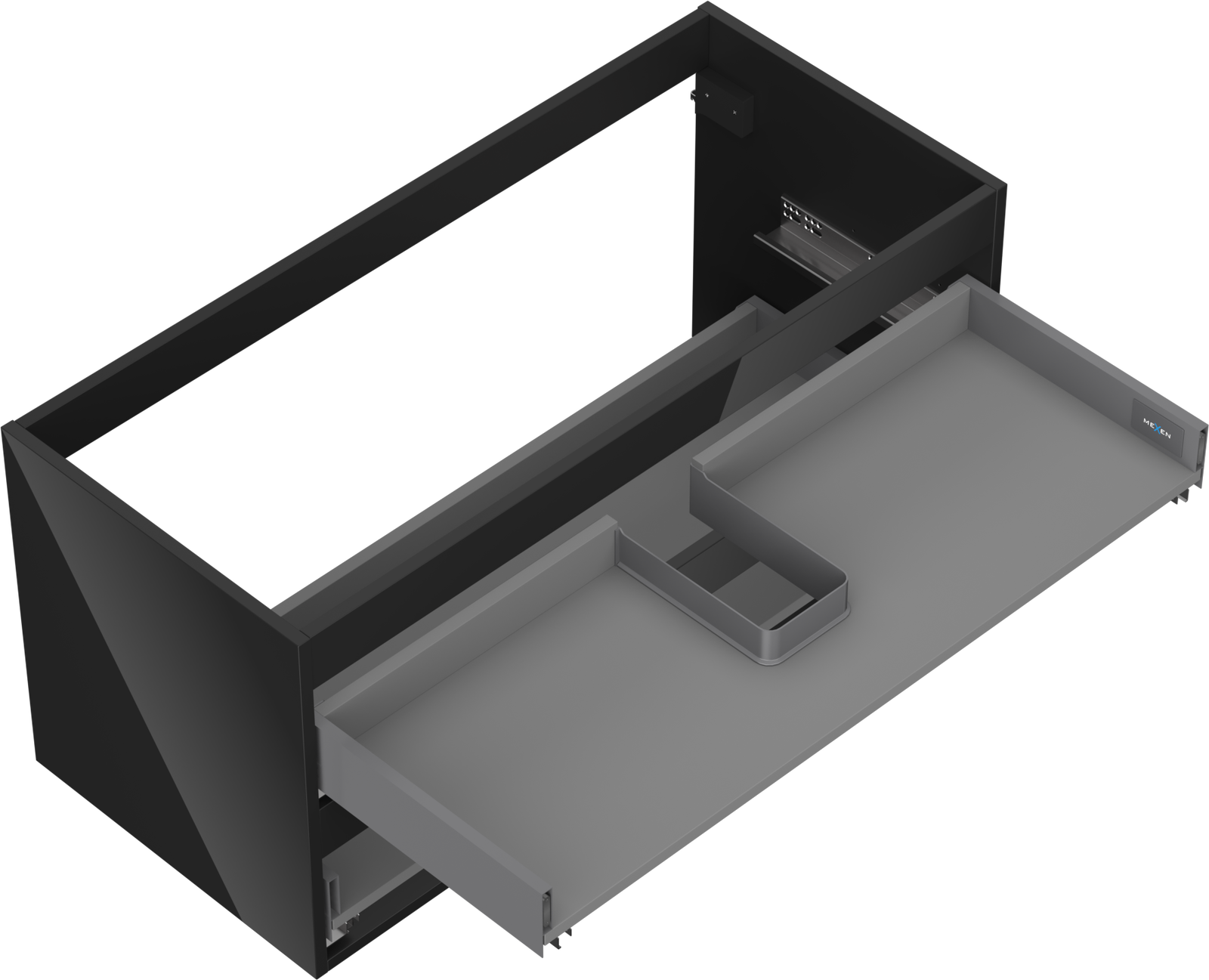 Der Ausschnitt in der Schublade ist so gestaltet, dass er den Siphon aufnehmen kann, der für Waschbeckeninstallationen erforderlich ist. Dadurch kann das Möbelstück voll funktionsfähig montiert werden, ohne auf den Platz in der Schublade zugunsten der Installation verzichten zu müssen.