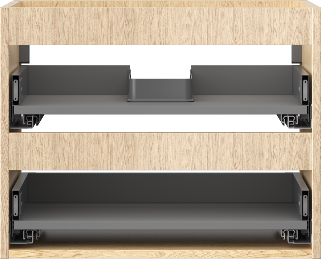 Der Ausschnitt in der Schublade ist so gestaltet, dass er den Siphon aufnehmen kann, der für Waschbeckeninstallationen erforderlich ist. Dadurch kann das Möbelstück voll funktionsfähig montiert werden, ohne auf den Platz in der Schublade zugunsten der Installation verzichten zu müssen.