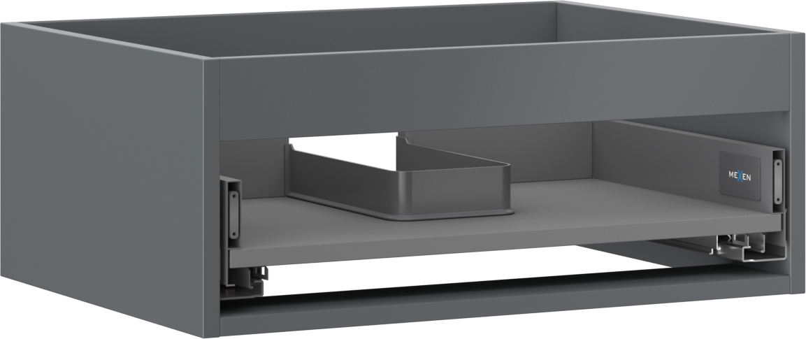 Eine Schublade mit Vollauszug ist eine Art von Schublade, die mit einem Mechanismus ausgestattet ist, der ein vollständiges Herausziehen aus dem Möbelkorpus ermöglicht. Ein solcher Mechanismus ermöglicht einen einfacheren Zugriff auf den Inhalt der Schublade, da es nicht notwendig ist, nach den hinteren Kanten zu greifen.