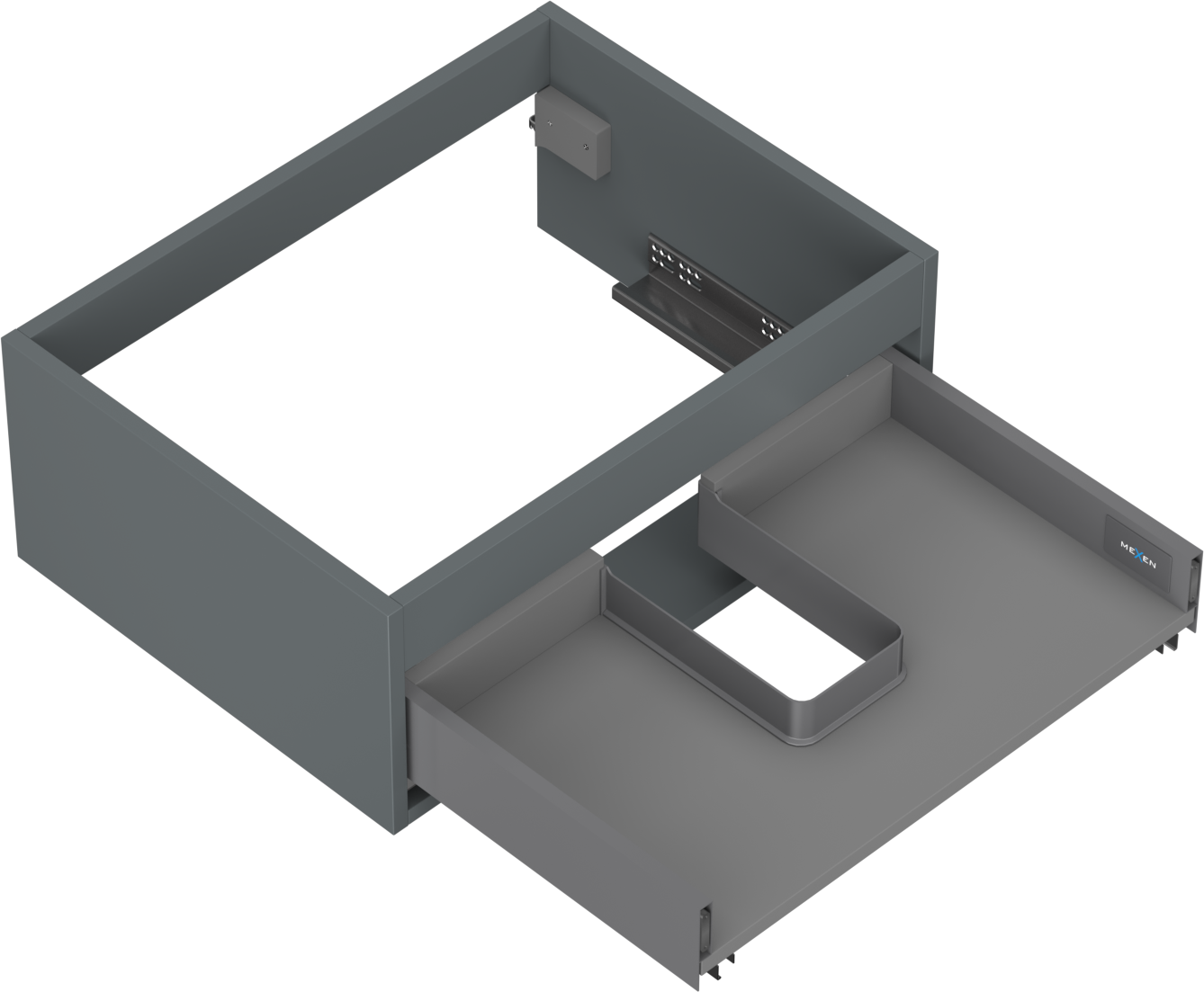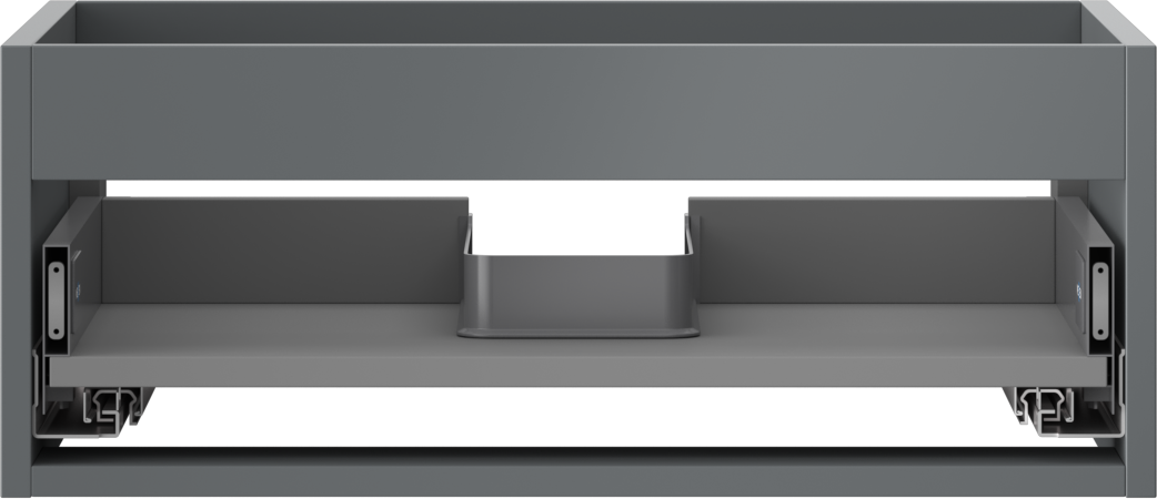 Der Ausschnitt in der Schublade ist so gestaltet, dass er den Siphon aufnehmen kann, der für Waschbeckeninstallationen erforderlich ist. Dadurch kann das Möbelstück voll funktionsfähig montiert werden, ohne auf den Platz in der Schublade zugunsten der Installation verzichten zu müssen.