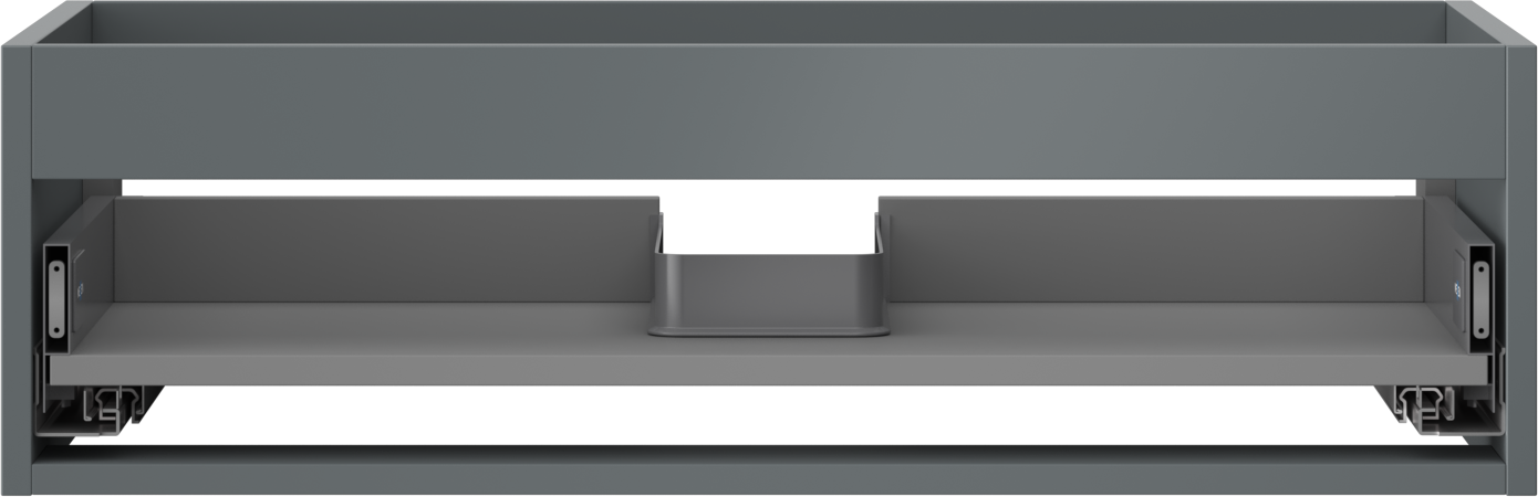 Der Ausschnitt in der Schublade ist so gestaltet, dass er den Siphon aufnehmen kann, der für Waschbeckeninstallationen erforderlich ist. Dadurch kann das Möbelstück voll funktionsfähig montiert werden, ohne auf den Platz in der Schublade zugunsten der Installation verzichten zu müssen.