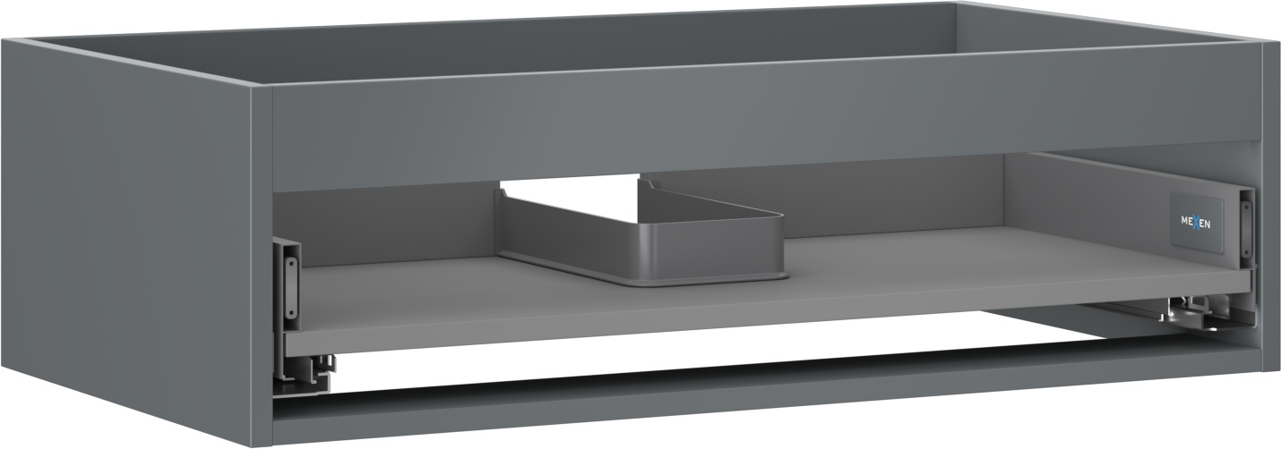 Eine Schublade mit Vollauszug ist eine Art von Schublade, die mit einem Mechanismus ausgestattet ist, der ein vollständiges Herausziehen aus dem Möbelkorpus ermöglicht. Ein solcher Mechanismus ermöglicht einen einfacheren Zugriff auf den Inhalt der Schublade, da es nicht notwendig ist, nach den hinteren Kanten zu greifen.