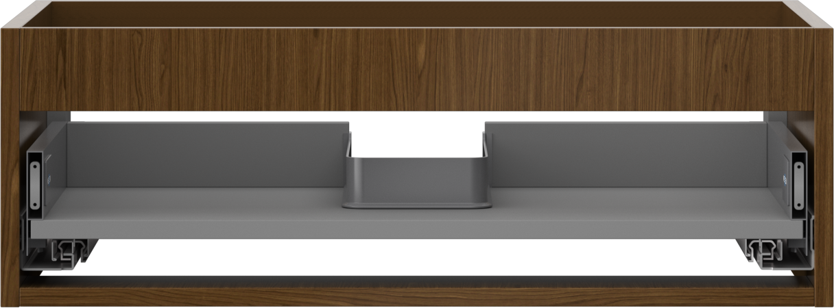 Der Ausschnitt in der Schublade ist so gestaltet, dass er den Siphon aufnehmen kann, der für Waschbeckeninstallationen erforderlich ist. Dadurch kann das Möbelstück voll funktionsfähig montiert werden, ohne auf den Platz in der Schublade zugunsten der Installation verzichten zu müssen.